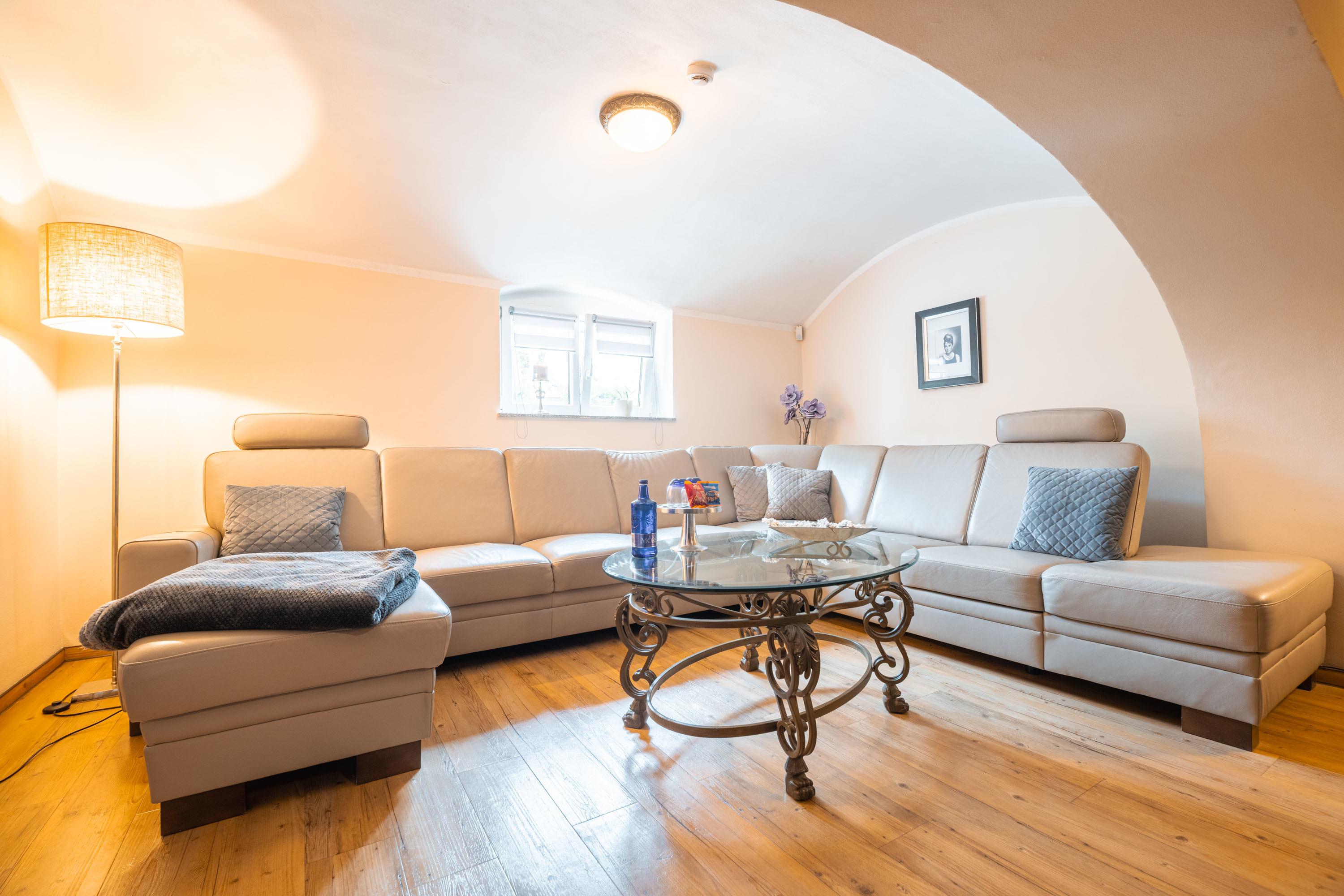 Die Deluxe Souterrain Ferienwohnung präsentiert sich als stilvolles Refugium mit großzügigen Räumlichkeiten und hochwertiger Ausstattung, ideal für anspruchsvolle Gäste, die einen exklusiven Aufenthalt suchen.
