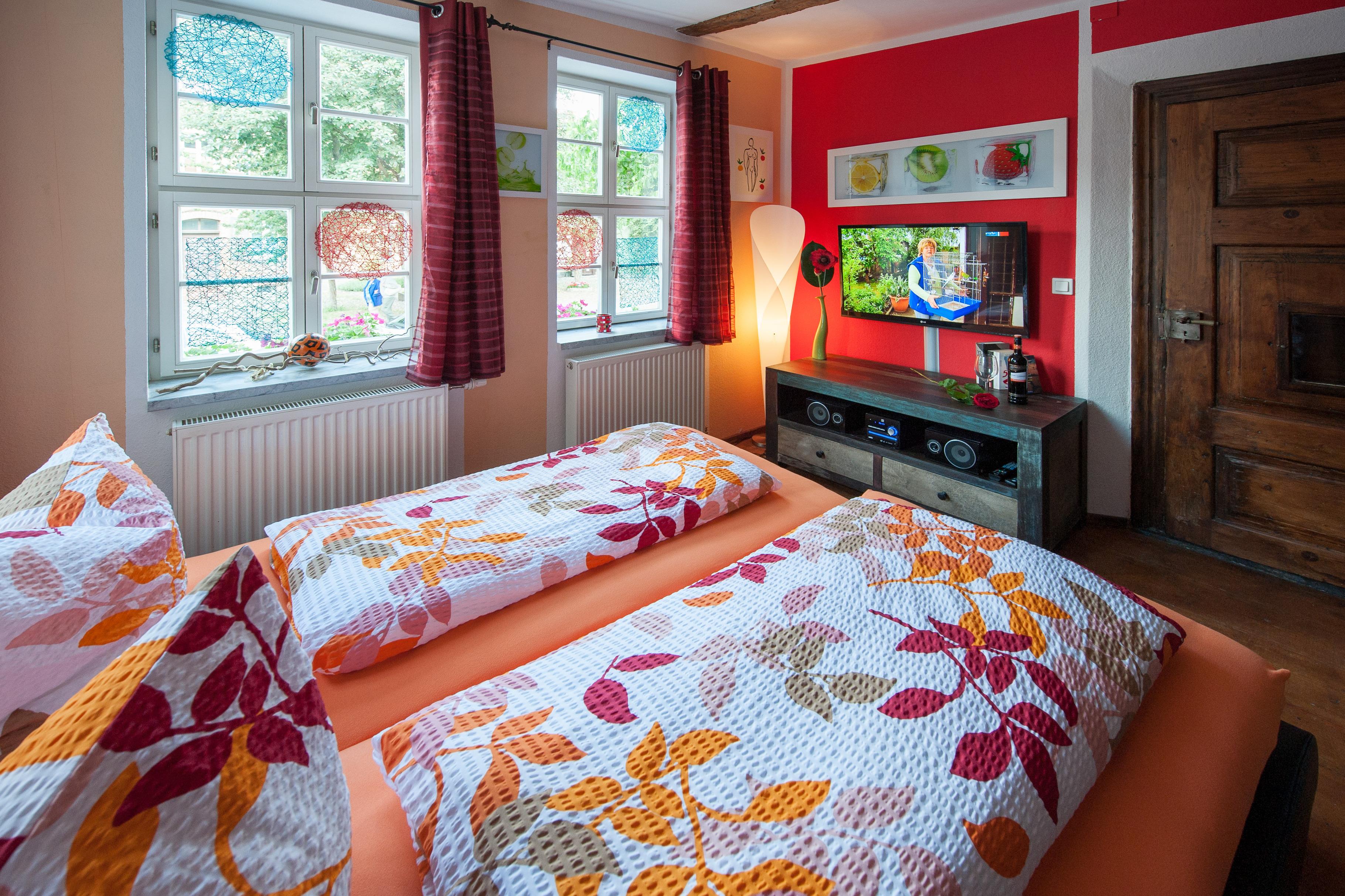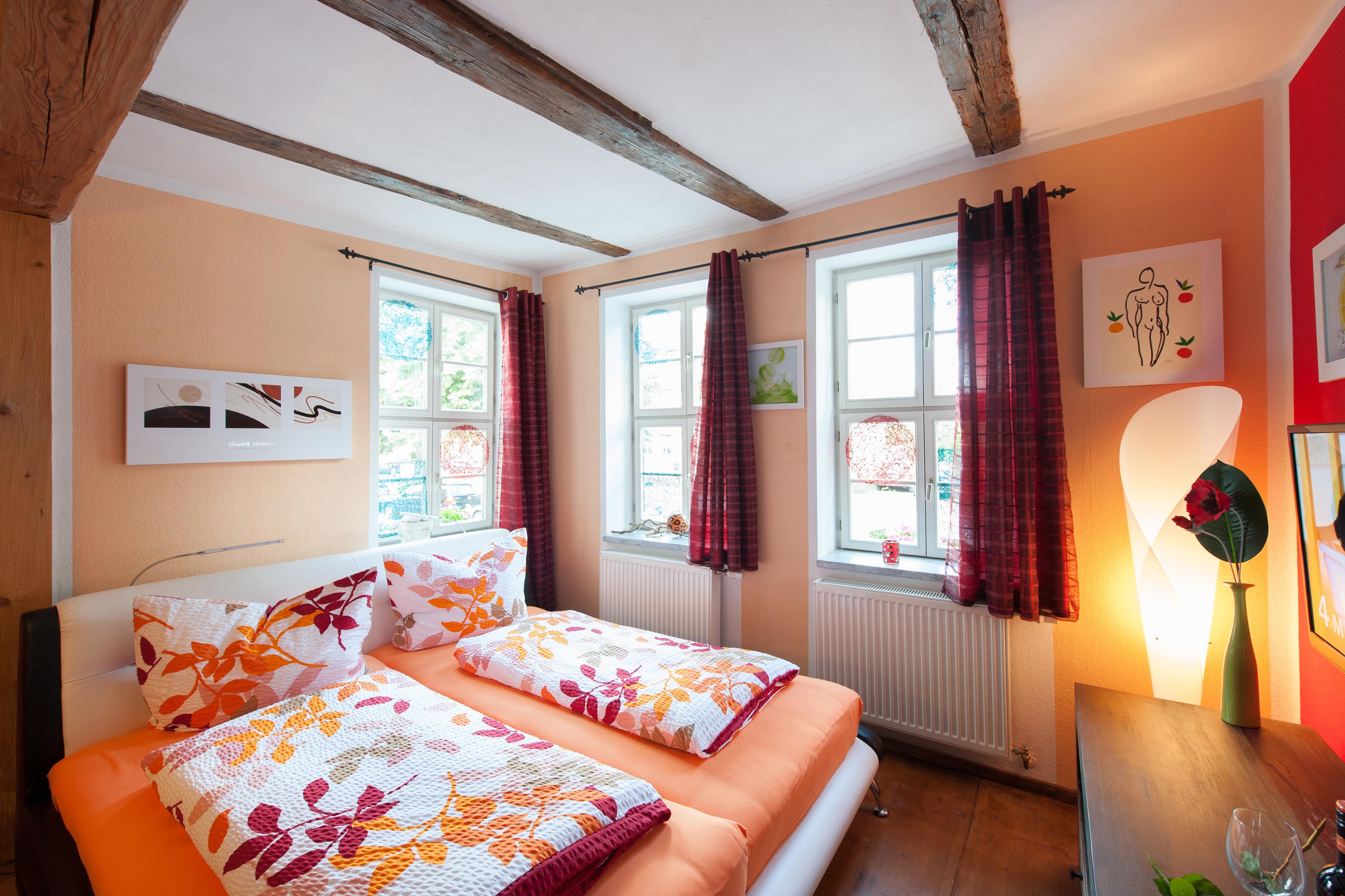 Es erwarten Sie vier Wohnungen, die entsprechend geprägt sind vom Ambiente der alten Zeit und dennoch allen Komfort unserer Neuzeit bieten. All unsere Zimmer strahlen eine farbenfrohe Freundlichkeit aus, die nicht vergessen lässt, dass man sich im Urlaub befindet. Wir wollen Ihnen nicht nur eine Herberge bieten, um unsere 1000-jährige Fachwerkstadt kennen zu lernen, sondern auch ein wohliges Gefühl an eine besondere und interessante Unterkunft vermitteln
