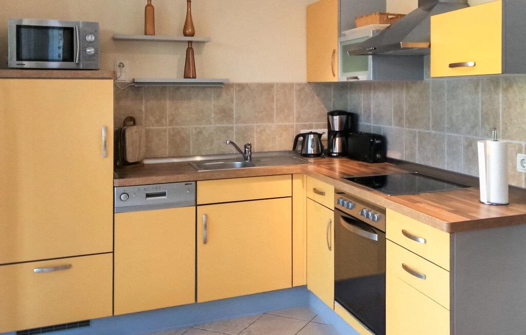 Lad hverdagen ligge og nyd et afslappende ophold i denne lejlighed, kun få skridt fra søen. Lav mad sammen, nyd måltider i køkkenet, mens I planlægger jeres næste dag og nyd livet om aftenen på de rummelige sofaer.