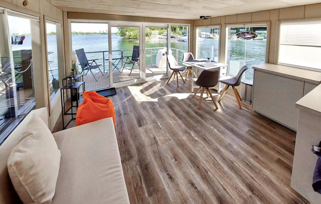 Denne komfortable husbåd byder sine gæster velkommen på en førsteklasses beliggenhed. Nyd måltider sammen ved spisebordet og tilbring hyggelige aftener i en behagelig atmosfære. Læn jer tilbage i sofaen, snup et spil kort og snak til langt ud på natten.