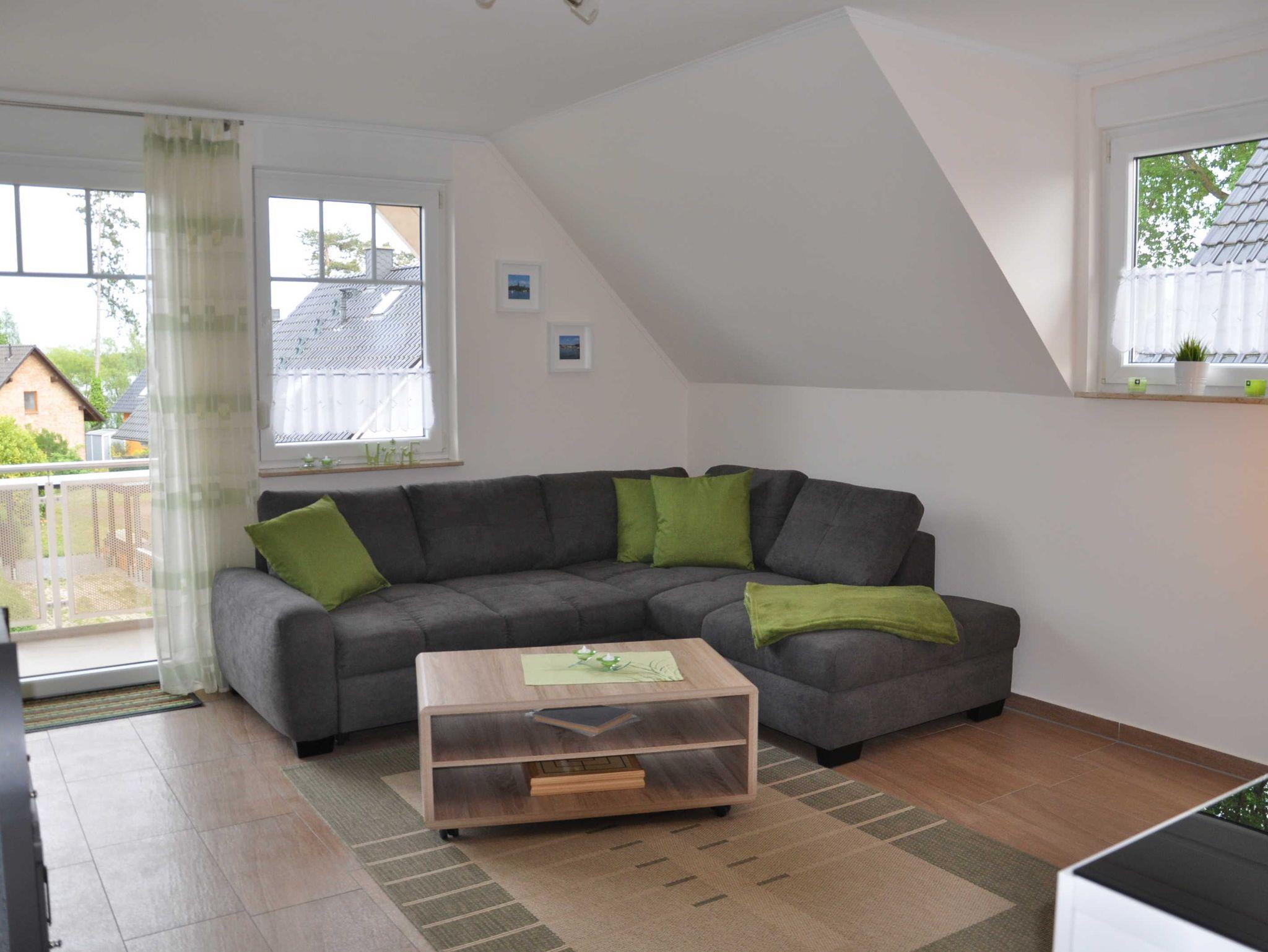 Die beliebte 3 Zimmer Obergeschoss - Ferienwohnung im Ferienhaus Müritzstern verfügt über 2 Schlafzimmer, 1 Wohn- und Essbereich, Kamin (hier stellt der Vermieter das Brennholz kostenfrei), TV, Balkon sowie einem Bad mit Dusche und WC runden die Ausstattung der geschmackvoll eingerichteten Ferienwohnung ab. Die rund 60 qm große Ferienwohnung kann mit bis zu 4 Personen belegt werden.