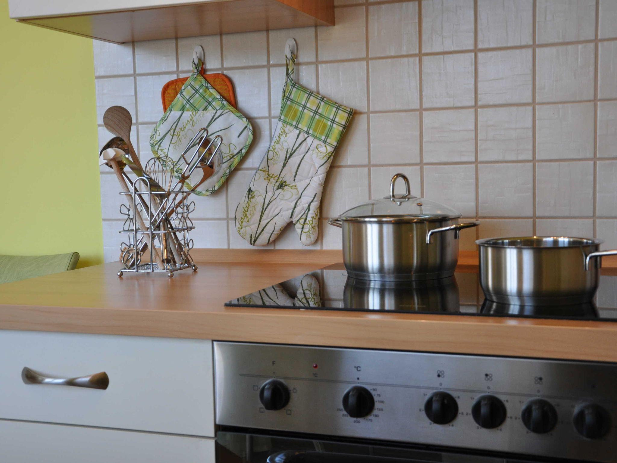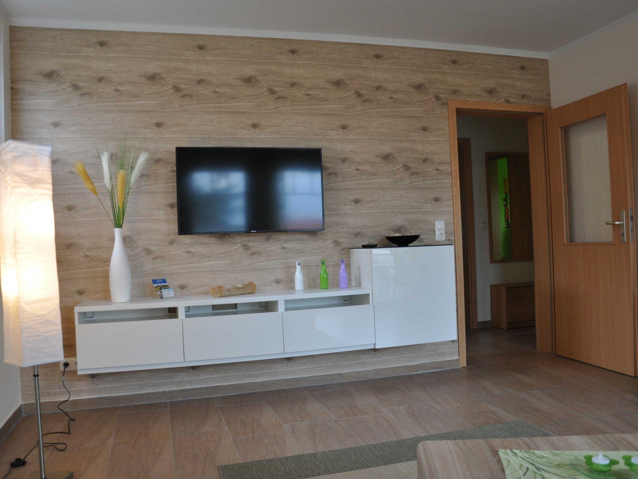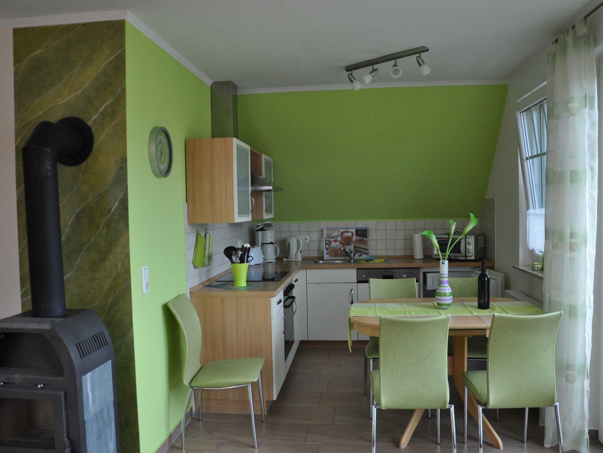 Eine Aufbettungsmöglichkeit besteht im Wohnzimmer. Die Couch verfügt über eine Schlaffunktion. Darüber hinaus verfügt das EG-Appartement über 1 Bad mit Dusche sowie einer Infrarot-Sauna und Kamin, kostenfreien WLAN, Wohn- /Essbereich mit vollwertiger Einbauküche mit Spülmaschine, Kühl-/Gefrierfunktion, Ceranherd und Mikrowelle stehen ebenfalls zur Verfügung.