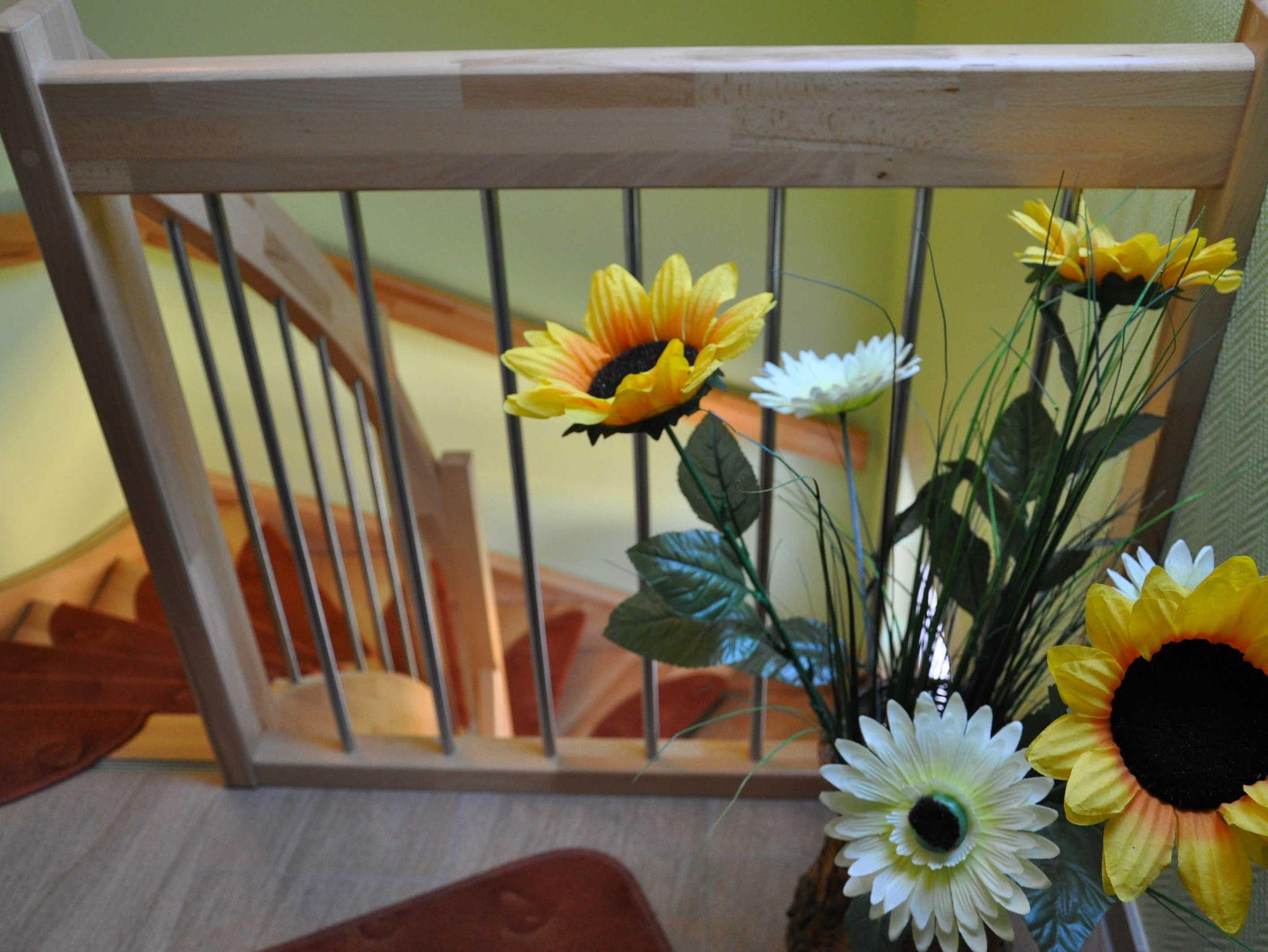 Das Obergeschoss-Appartement verfügt über eine identische Ausstattung wie das Erdgeschoss. Hier befindet sich ein Bad mit Dusche und WC. Der möbilierte Balkon verfügt über ein Elektrogrill. Eine Babyausstattung bestehend aus Kinderreisebett und Hochstuhl können gern bei Bedarf kostenfrei zur Verfügung gestellt werden.