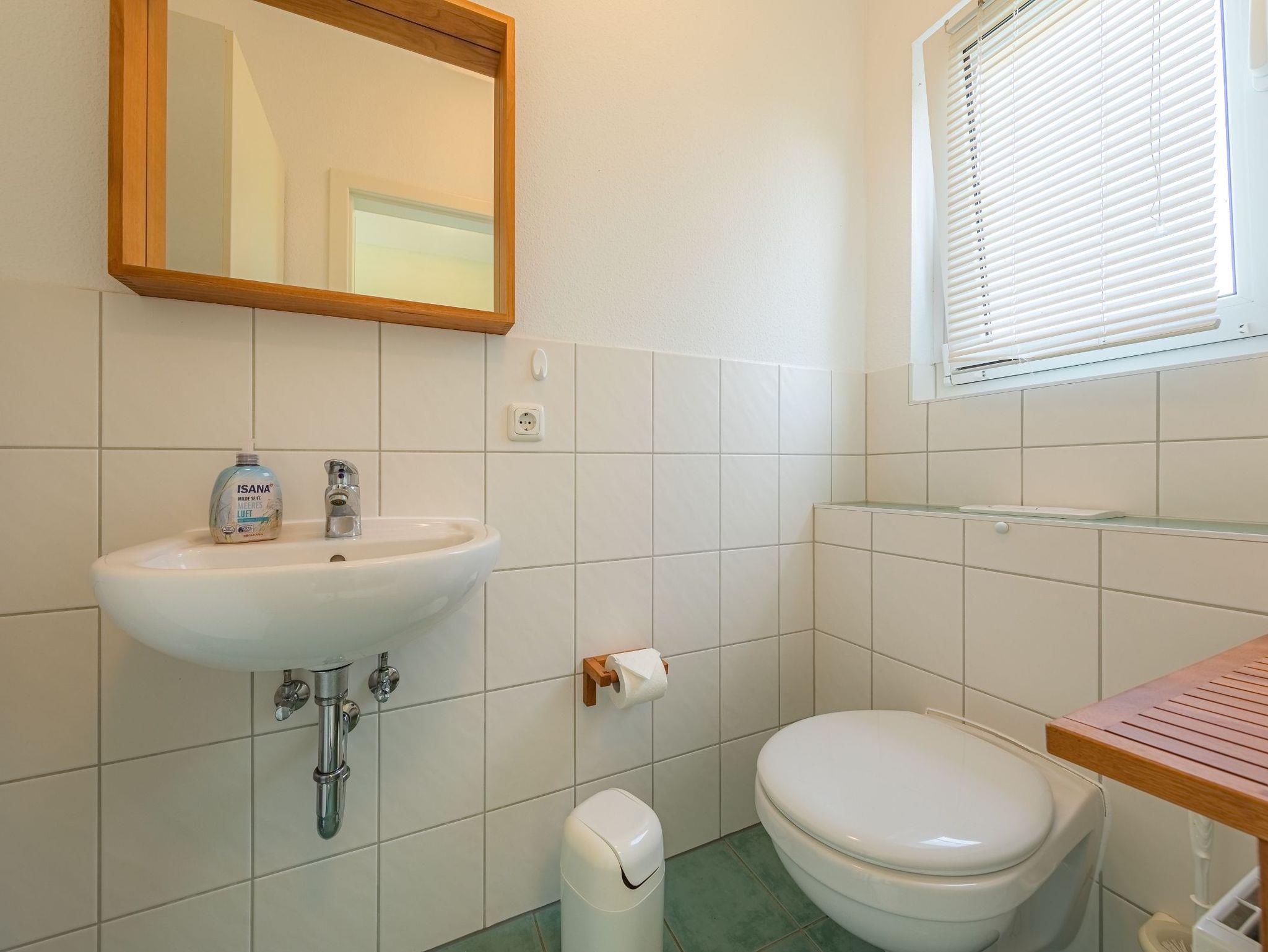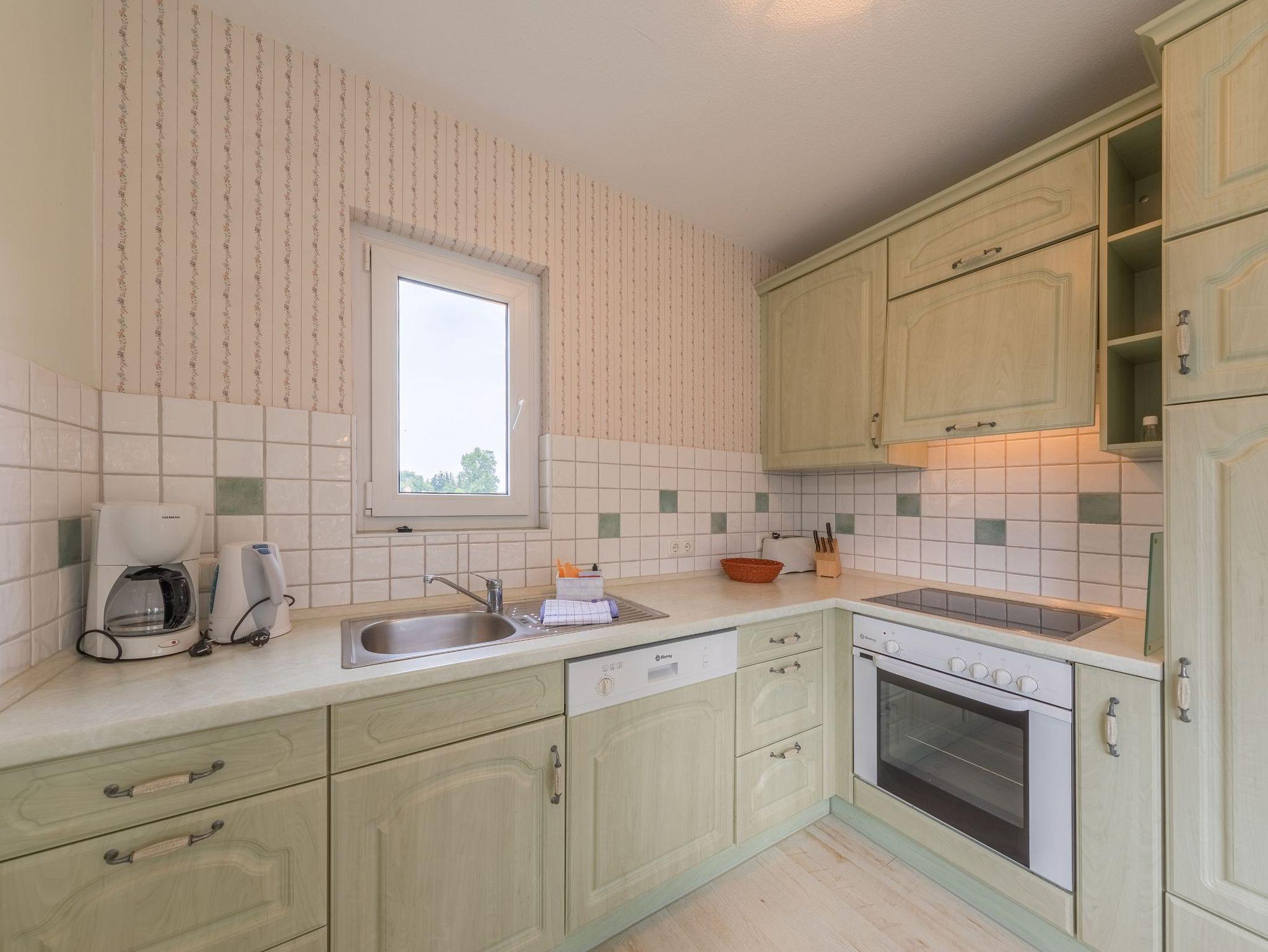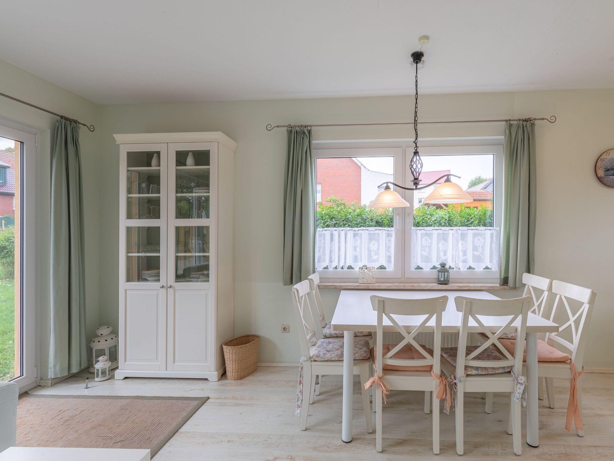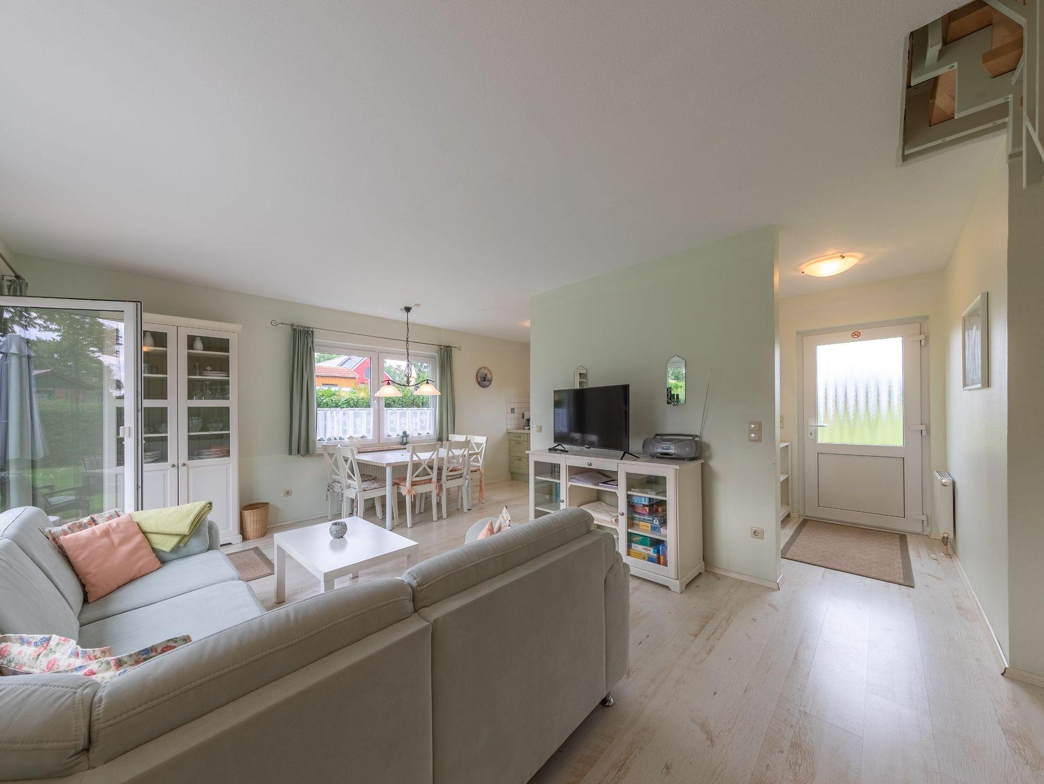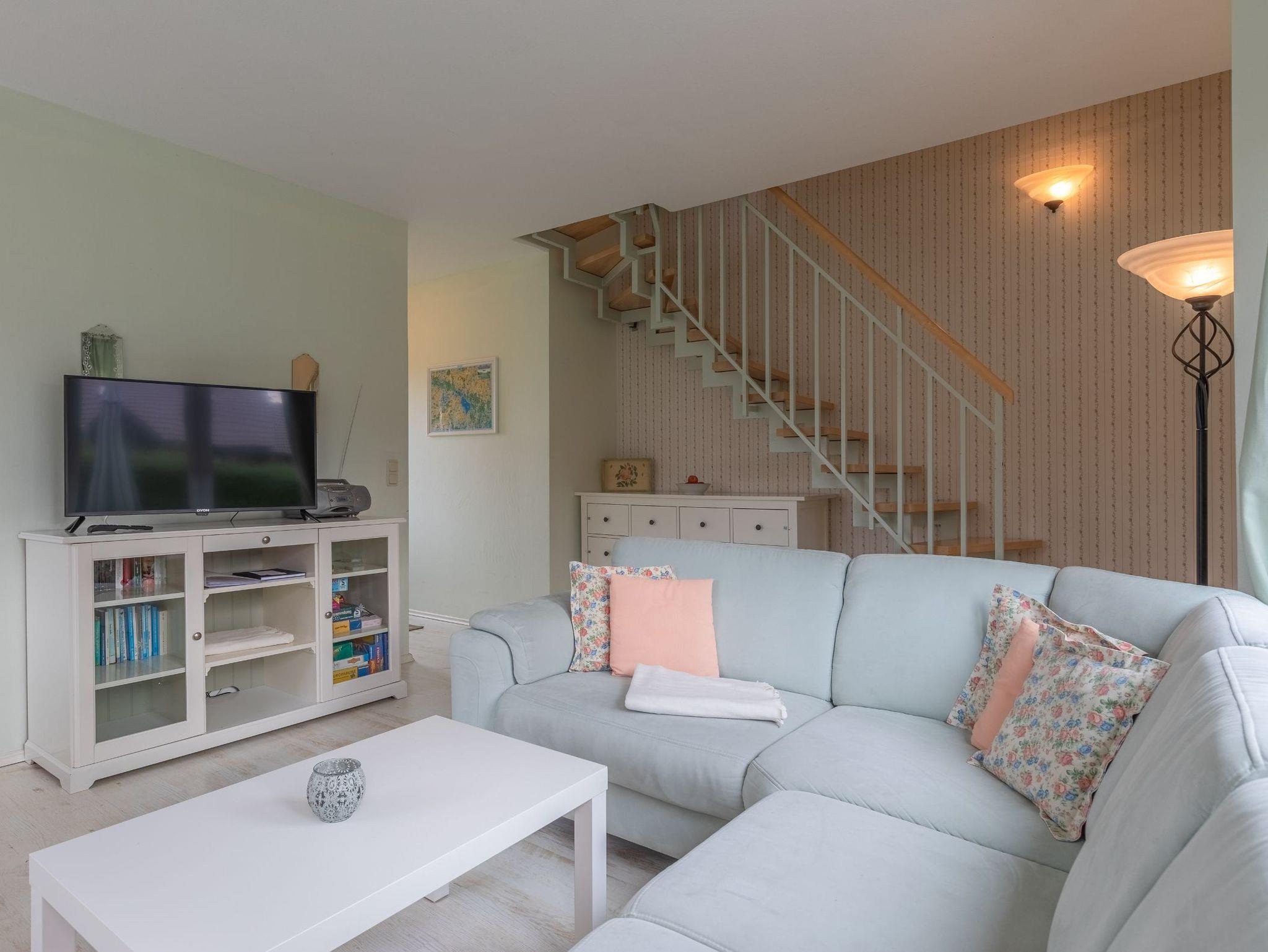 Im Erdgeschoss befindet sich neben dem Eingangsbereich mit Garderobe ein Gäste-WC. Im lichtdurchfluteten Wohnraum stehen ein Essplatz mit großem Tisch sowie ein gemütliches Ecksofa zur Verfügung. Außerdem gibt es einen Fernseher mit SAT-Empfang sowie ein Radio mit CD-Spieler. Die offene Küche ist neben einem Cerankochfeld und Backofen mit einem Geschirrspüler, einem großen Kühlschrank sowie einem separaten Gefrierfach ausgestattet. Außerdem finden Sie alle notwendigen Küchengeräte wie Toaster, Kaffeemaschine und Wasserkocher. Geschirr und Besteck ist in ausreichender Anzahl vorhanden.