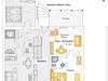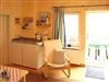 Die wunderschön helle Ferienwohnung Schwalbe liegt im Erdgeschoss und ist ca. 31 m² groß. Über die kleine Terrasse auf der Seeseite betritt man den offenen Wohn-/ Essbereich mit Pantryküche, kleinem Esstisch, Sofa und SAT-TV. Durch Fenster und Balkontür wie vom Balkon selbst hat man einen wundervollen Ausblick auf den See. An den Wohnbereich schließt sich das geräumige Schlafzimmer mit Doppelbett und eingelassenem Badezimmer mit WC und Dusche an.