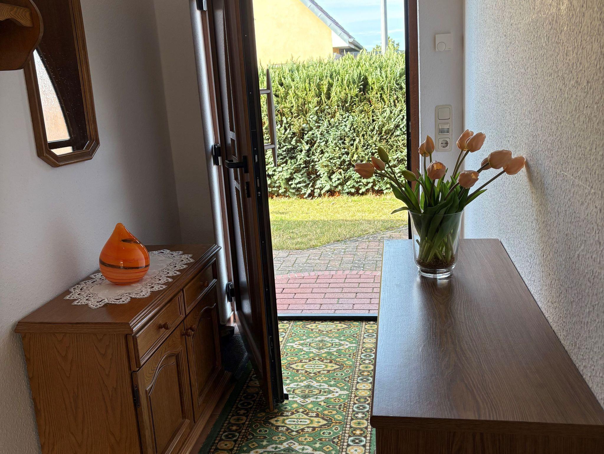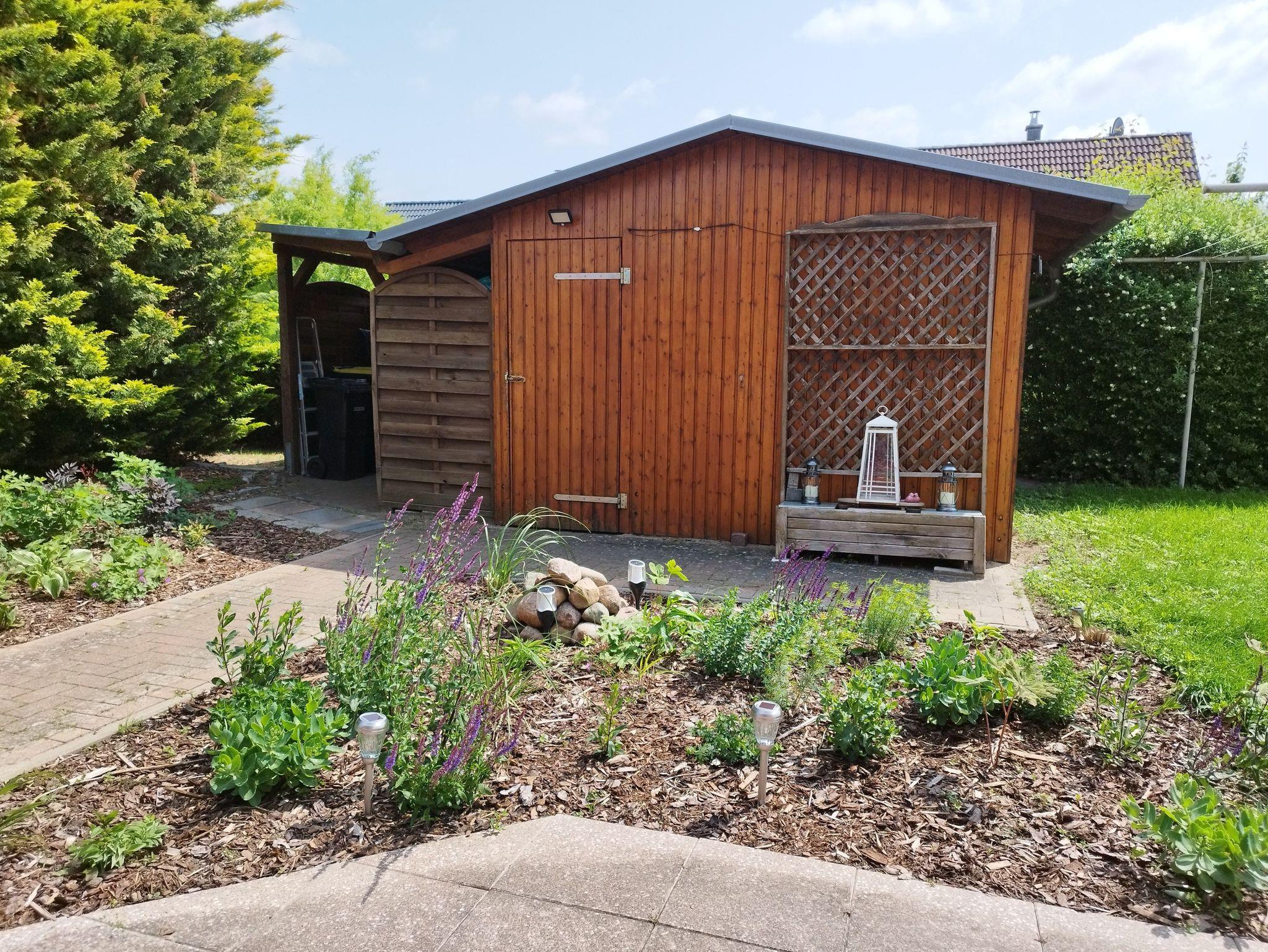 Die ruhige Ferienwohnung ist voll ausgestattet. Sie verfügt über eine Terasse mit Blick in den Garten. Sie können einen Carport nutzen zum abstellen ihres PKWs und die Fahrräder in einen abschließbaren Schuppen unterstellen und dort bei Bedarf auch mit Strom aufladen.