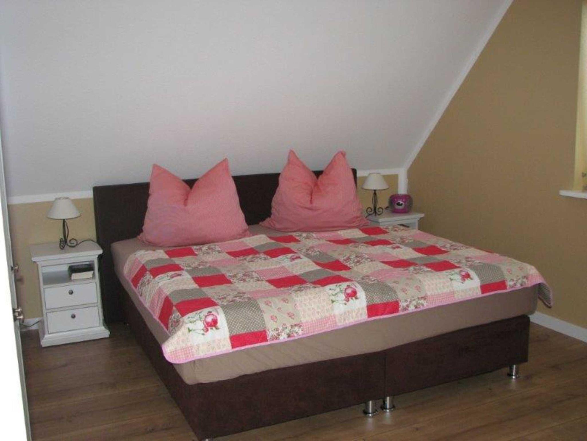 Die Ferienwohnung geht über zwei Etagen. In der unteren Etage befindet sich der Eingangsbereich. Hier können zum Beispiel die Fahrräder abgestellt werden. Im Obergeschoss befinden sich Badezimmer, Schlafzimmer, das Wohnzimmer mit einer offenen Küche und der dazugehörige Essbereich. Die separat von den Vermietern gelegene Terrasse befindet sich im Garten. Hier besteht unter anderem die Möglichkeit zum Grillen.