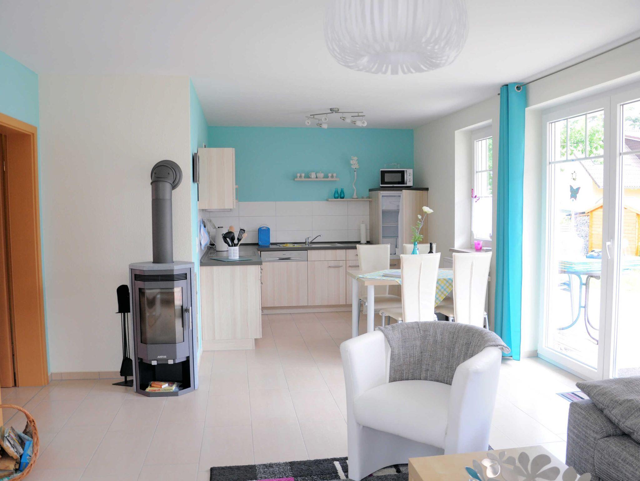 Das attraktive 3 Zimmer Erdgeschoss - Ferienwohnung im Ferienhaus Müritzbrise verfügt über 2 Schlafzimmer, 1 Wohn- und Essbereich, Kamin (hier stellt der Vermieter das Brennholz kostenfrei), TV, Terrasse, ein Duschbad mit WC und Infrarot-Sauna runden die Ausstattung der geschmackvoll eingerichteten Ferienwohnung ab. Die rund 65 qm große Ferienwohnung kann mit bis zu 4 Personen belegt werden.