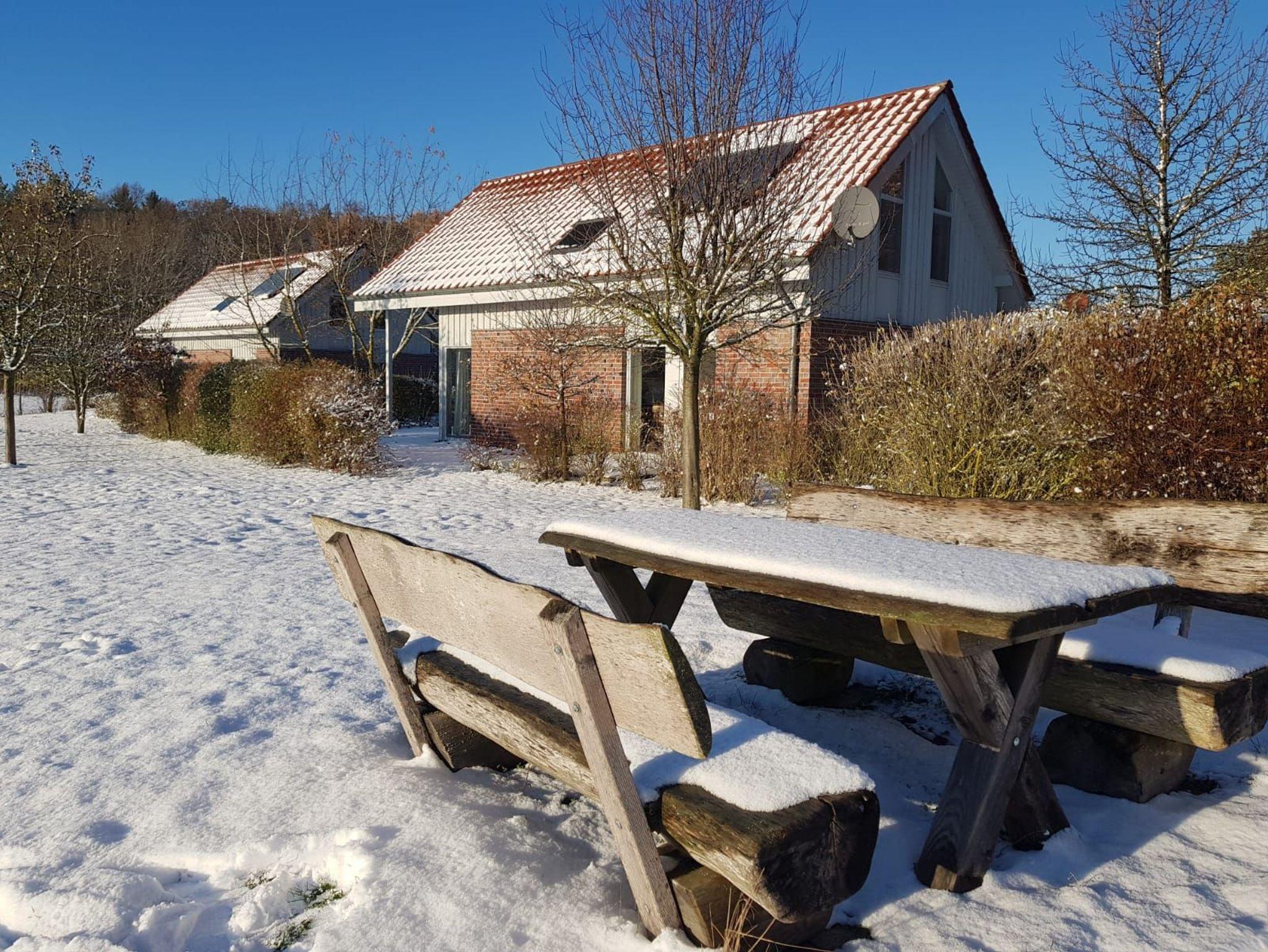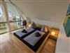 Der offene Wohn-/Essbereich ist unsere lauschige Mitte. Hier kommt jeder auf seine Kosten. Wie wäre es mit ausgiebigem Relaxen auf unserem kuschligen Sofa vor dem mollig-warmen Kamin? Keine Panik, für mehr Action sorgt die digitale Unterhaltung per Smart-TV und WLAN. Die Ausstattung der offenen Küche lässt nur wenig Wünsche offen: Geschirr und Besteck, Spülmaschine, Kühl-Gefrierschrank, Ceranfeld mit Umluftherd stehen jederzeit bereit. Nur das Einkaufen und Kochen müssen Sie noch selbst übernehmen! So macht Selbstverpflegung Spaß! Wir haben uns bei der Auswahl der Möbel und Dekoration sehr viel Mühe gegeben. Mit unserem wohnlichen Ambiente möchten wir für Sie einen Ort auf Zeit zaubern, an dem Sie Ruhe, Gelassenheit und Erholung finden. Das kleine Schlafzimmer im Erdgeschoss verfügt über zwei getrennte Betten und das Badezimmer über eine Dusche. Im Obergeschoss stehen für Sie drei weitere Schlafzimmer mit Kleiderschränken und Nachttischen bereit. Sie sind mit Absicht in schlicht hellem Holz gestaltet worden, um den natürlichen Charakter der Umgebung aufzugreifen. Im zweiten Badezimmer befinden sich eine Dusche und die gemütliche Sauna. Wenn Sie nach draußen in den kleinen Garten treten, dann atmen Sie einmal tief durch und erfreuen sich dann an den beiden Terrassen, wo Sie mit 8 Personen entspannt speisen können oder einfach nur relaxen dürfen. Übrigens, als besonderes Highlight temperieren wir ganzjährig für Sie unseren Outdoor-Whirpool auf 35 Grad.