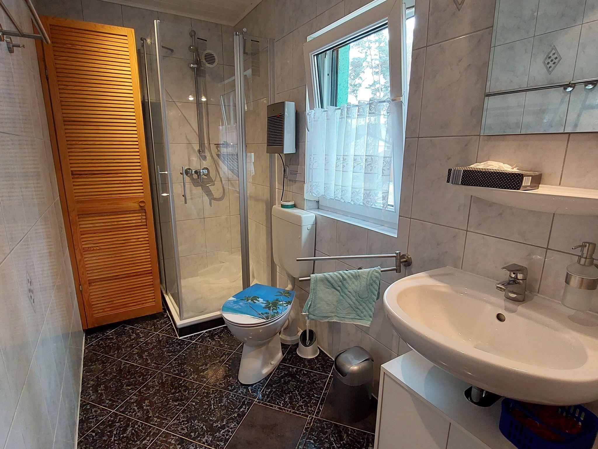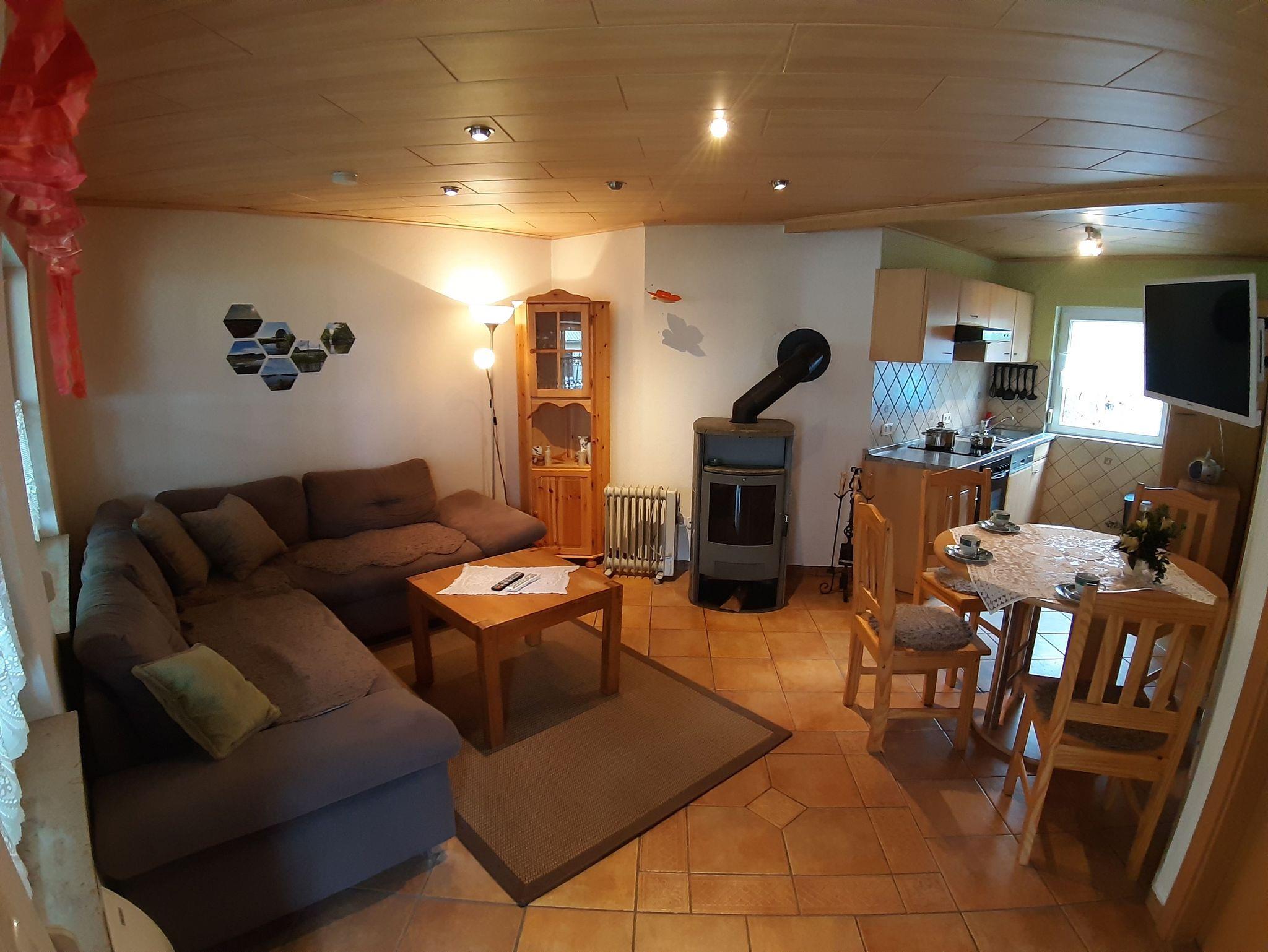 Das Ferienhaus ist für 4 Personen ausgerichet. Der Wohnraum ist offen zur Einbauküche.Im Wohnzimmer steht ein Kamin, eine Couch und TV. Im Küchebereich steht ein großer Eßtisch. Das Ferienhaus ist mit zwei Schlafräumen ausgestattet, im ersten Schafzimmer befindet sich ein Doppelbett und im anderen Schlafzimmer stehen die Betten getrennt. Das Bad ist mit einer Dusche/WC ausgestattet. Direkt am Haus befindet sich eine Terrasse zum Grillen und Entspannen. Ein Ruderboot und Fahrräder können gegen eine Gebühr beim Vermiter ausgeliehen werden.