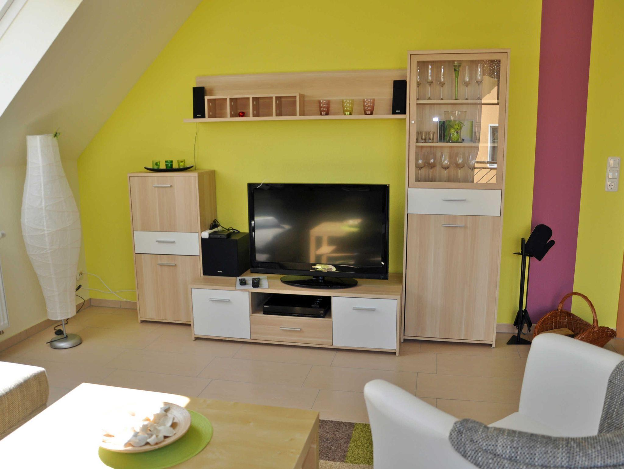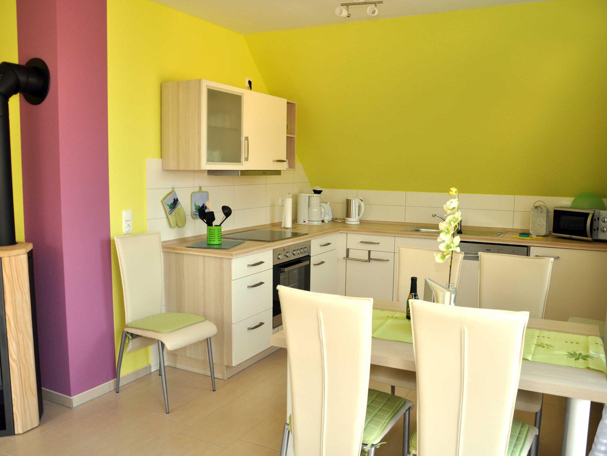 Eine Aufbettungsmöglichkeit besteht im Wohnzimmer. Die Couch verfügt über eine Schlaffunktion. Darüber hinaus verfügt das EG-Appartement über 1 Bad mit Dusche sowie einer Infrarot-Sauna und Kamin, kostenfreien WLAN, Wohn- /Essbereich mit vollwertiger Einbauküche mit Spülmaschine, Kühl-/Gefrierfunktion, Ceranherd und Mikrowelle stehen ebenfalls zur Verfügung.