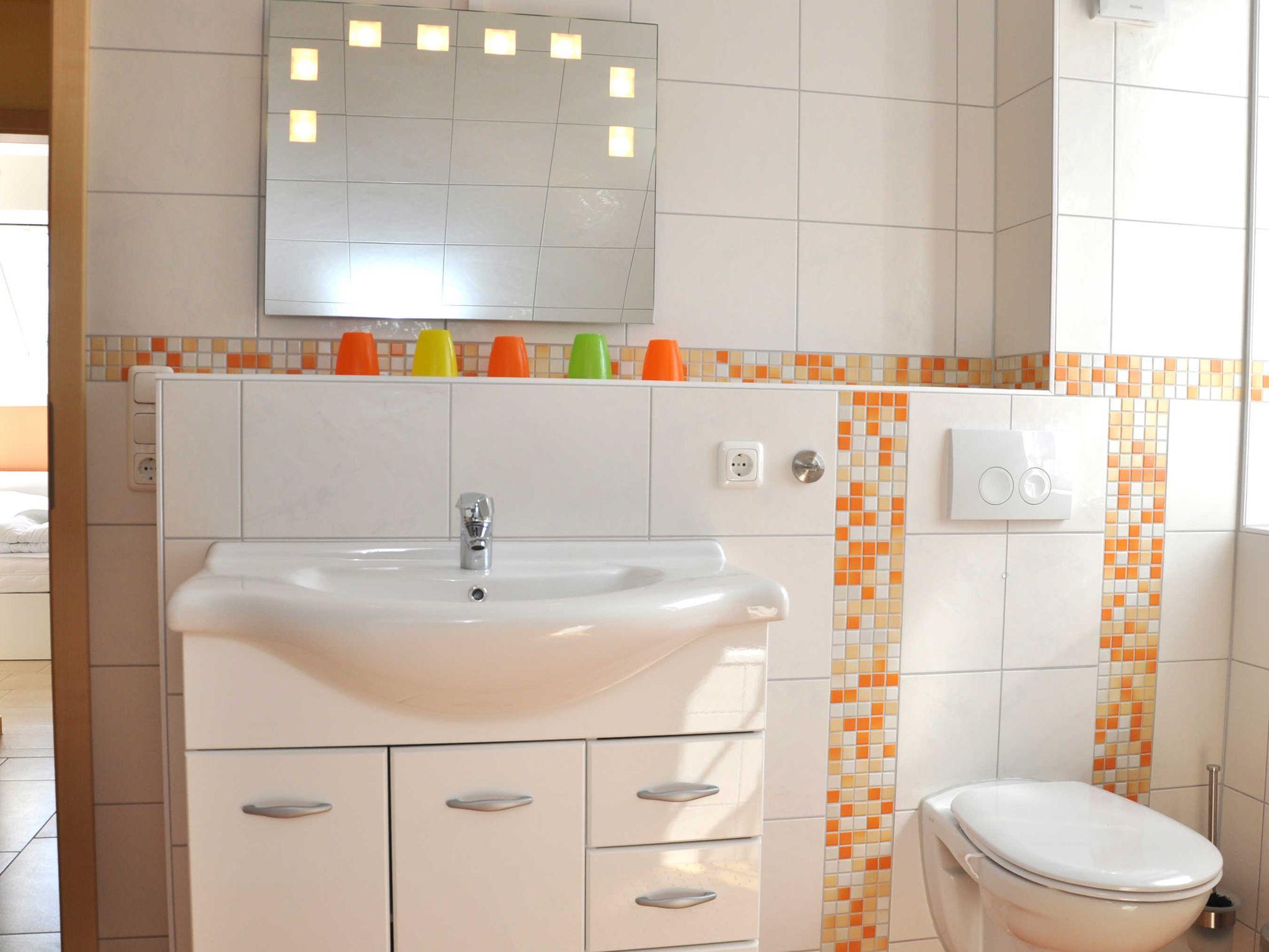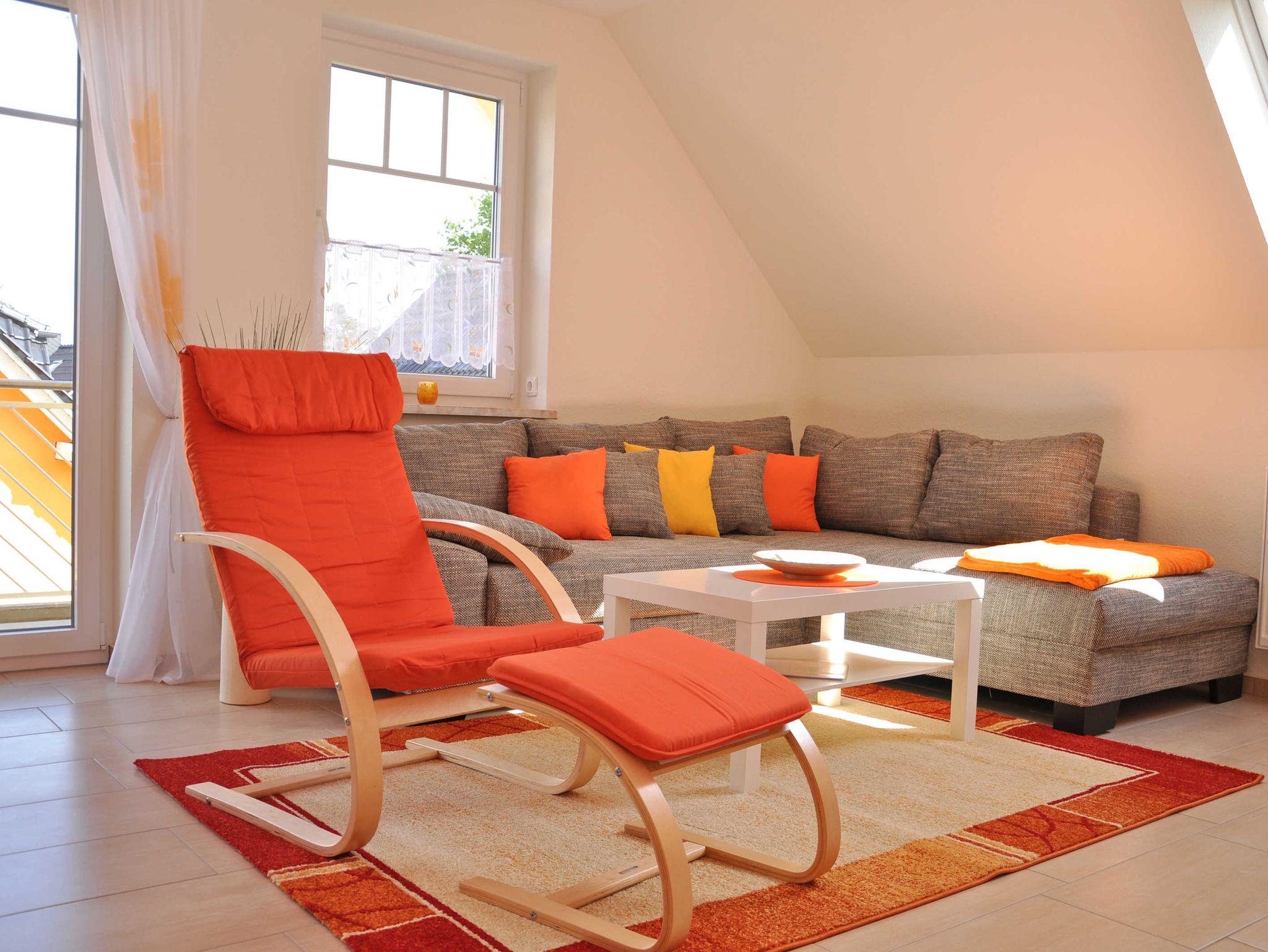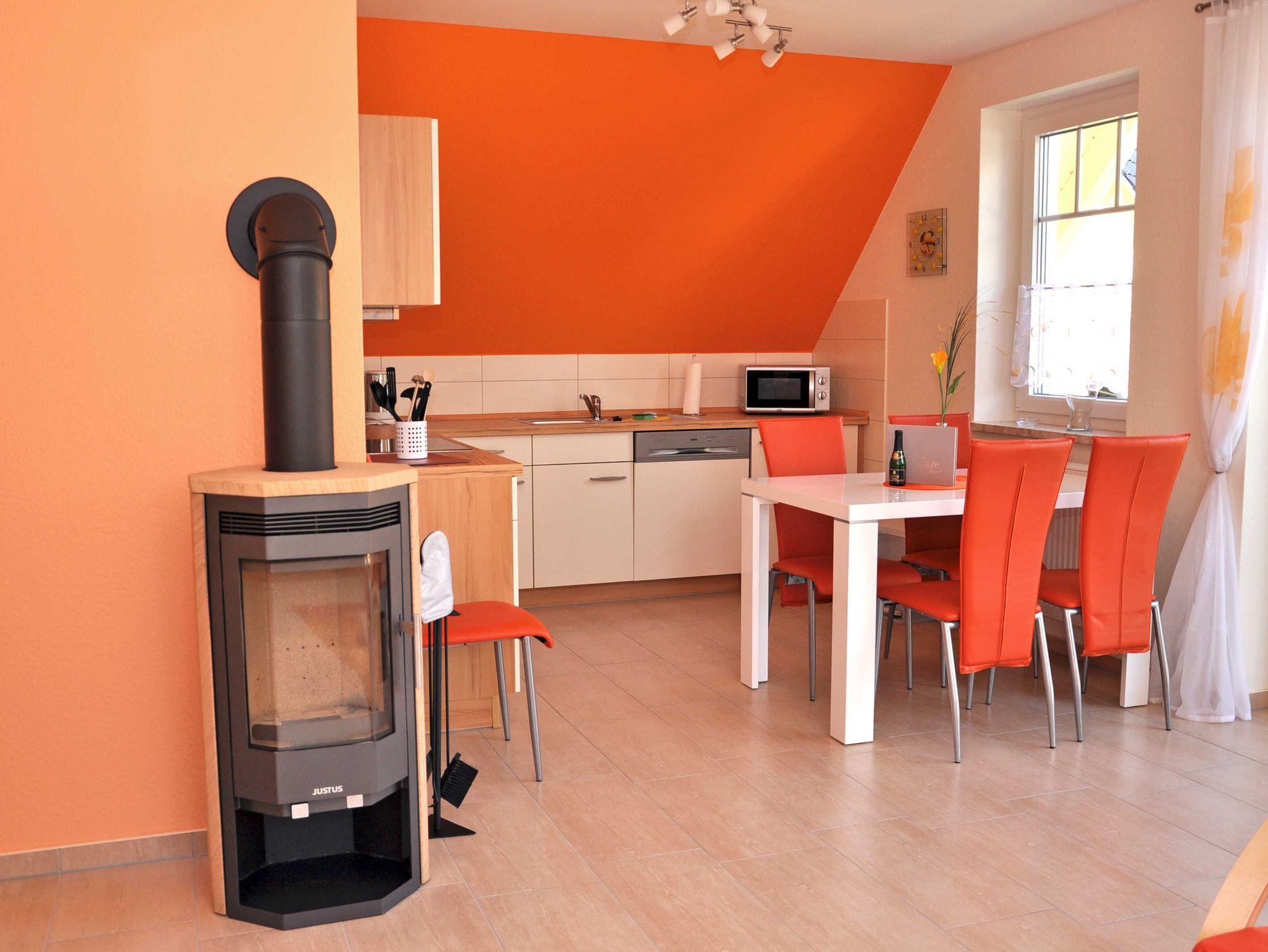 Eine Aufbettungsmöglichkeit besteht im Wohnzimmer. Die Couch verfügt über eine Schlaffunktion. Darüber hinaus verfügt das EG-Appartement über 1 Bad mit Dusche sowie einer Infrarot-Sauna und Kamin, kostenfreien WLAN, Wohn- /Essbereich mit vollwertiger Einbauküche mit Spülmaschine, Kühl-/Gefrierfunktion, Ceranherd und Mikrowelle stehen ebenfalls zur Verfügung.