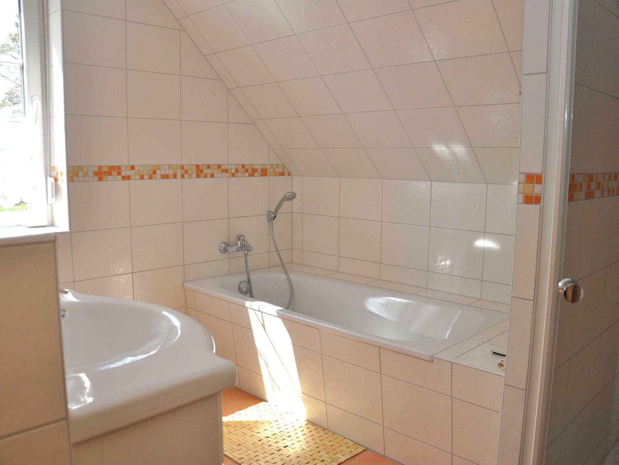 Das Obergeschoss-Appartement verfügt über eine identische Ausstattung wie das Erdgeschoss. Hier befindet sich ein Bad mit Dusche sowie eine Badewanne und WC. Der möbilierte Balkon verfügt über ein Elektrogrill. Eine Babyausstattung bestehend aus Kinderreisebett und Hochstuhl können gern bei Bedarf kostenfrei zur Verfügung gestellt werden.