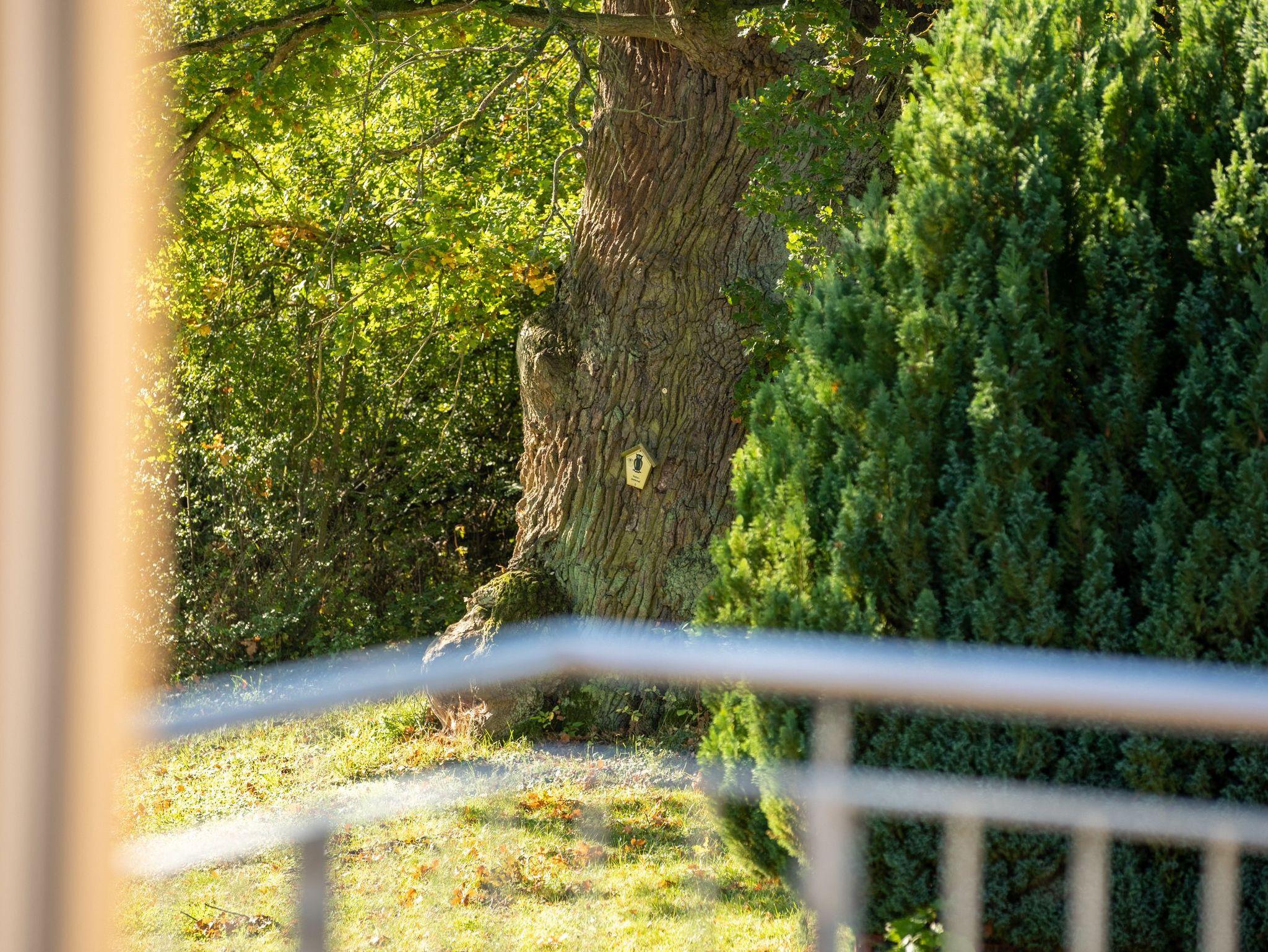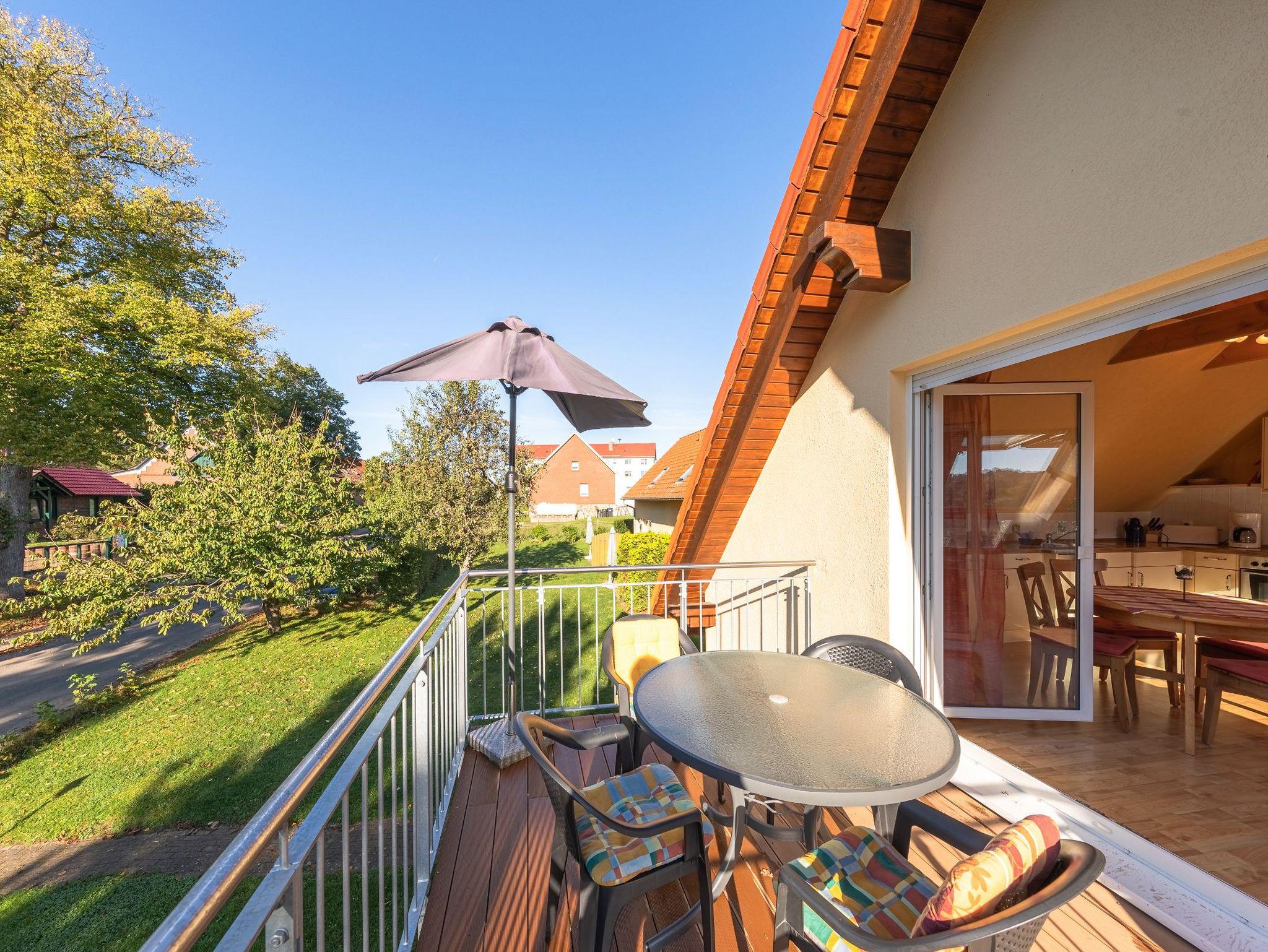Zur Müritz Ferienwohnung mit zwei Schlafzimmern gehört ein großer Balkon mit Möbeln sowie einem Sonnenschirm. Es kann aber auch der gesamte Gartenbereich von Ihnen als Spiel- und Liegewiese genutzt werden.