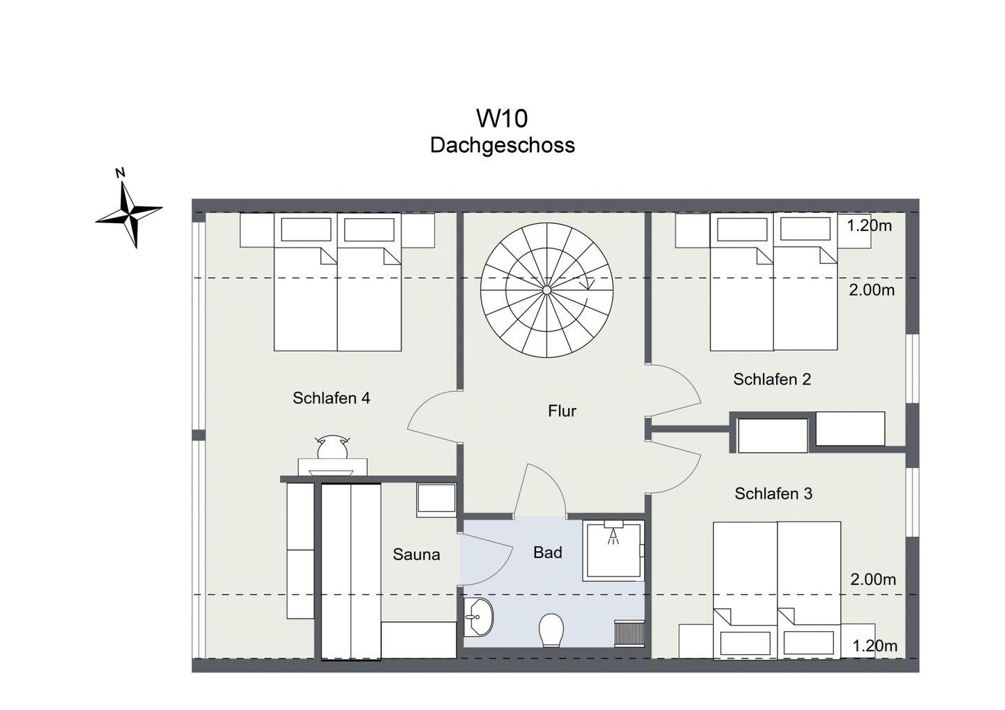 Im Obergeschoss befinden sich drei Schlafzimmer, die jeweils mit komfortablen Doppelbetten ausgestattet sind. Ein weiteres Highlight ist das Duschbad mit angrenzender Sauna, das zu einem privaten SPA-Erlebnis einlädt.