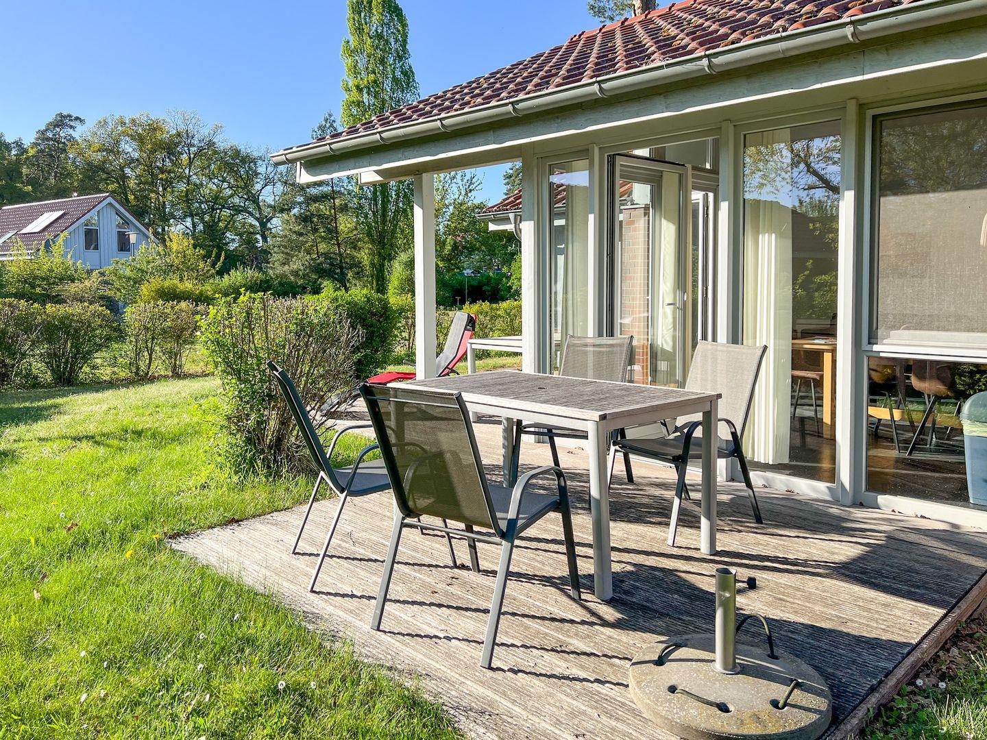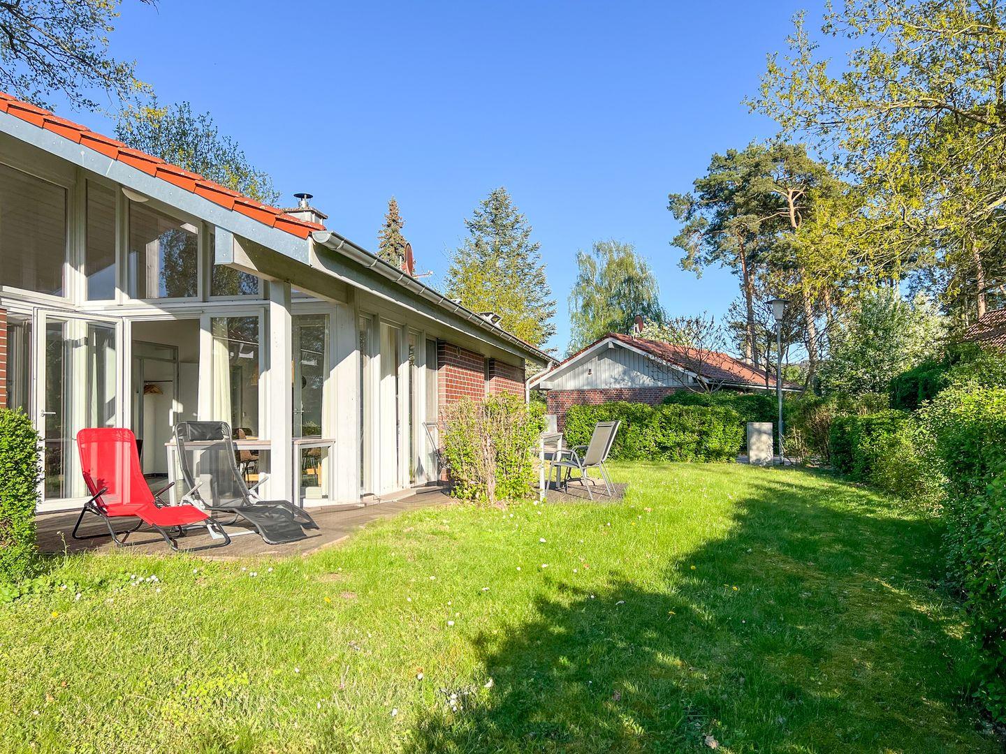 Am Ferienhaus gibt es zwei Terrassen. Der eigene kleine Garten rundet dabei Ihren persönlichen Rückzugsort ab.