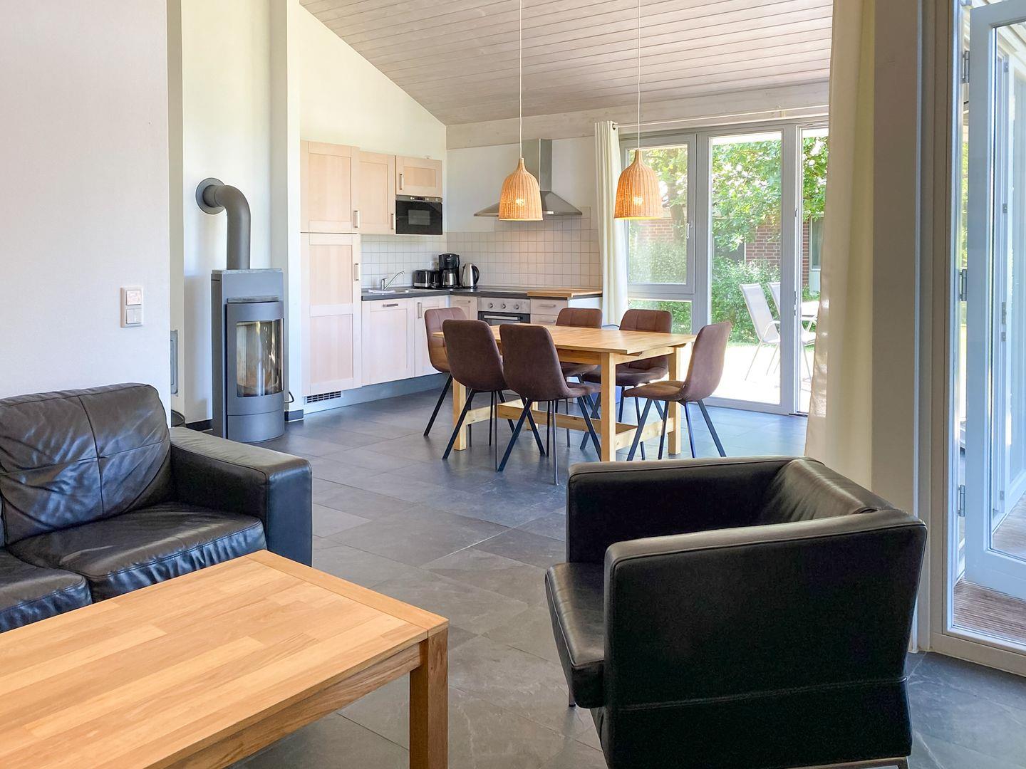 Das familienfreundliche Ferienhaus erstreckt sich über eine Ebene, verfügt über 3 Zimmer und bietet ausreichend Platz für 4 Personen auf 67 m². Der geräumige Wohn- und Essbereich mit Kamin und offener Küche bildet das Zentrum des Ferienhauses. Direkt am Wohnzimmer gelegen befindet sich eine Innensauna mit direktem Blick in den Garten für Ihr privates SPA Erlebnis.
