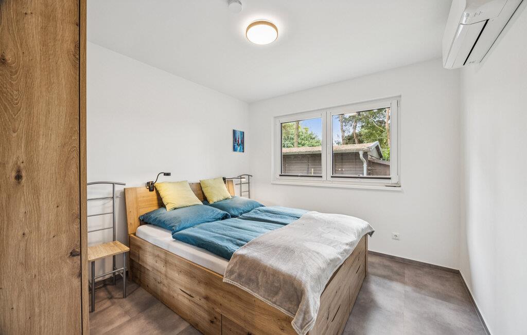 Træd ud på den overdækkede terrasse og begynd dagene med morgenmad i den friske luft. Brug siddeområdet til at slappe af i skyggen eller observere naturen med en kop kaffe. Udforsk den velholdte have, omgivet af høje træer, der tilbyder privatliv og en naturlig atmosfære. Gennem træerne kan I se det glitrende vand i Müritz-floden. Lad aftenen slutte fredeligt, mens I lytter til træernes raslen i brisen.