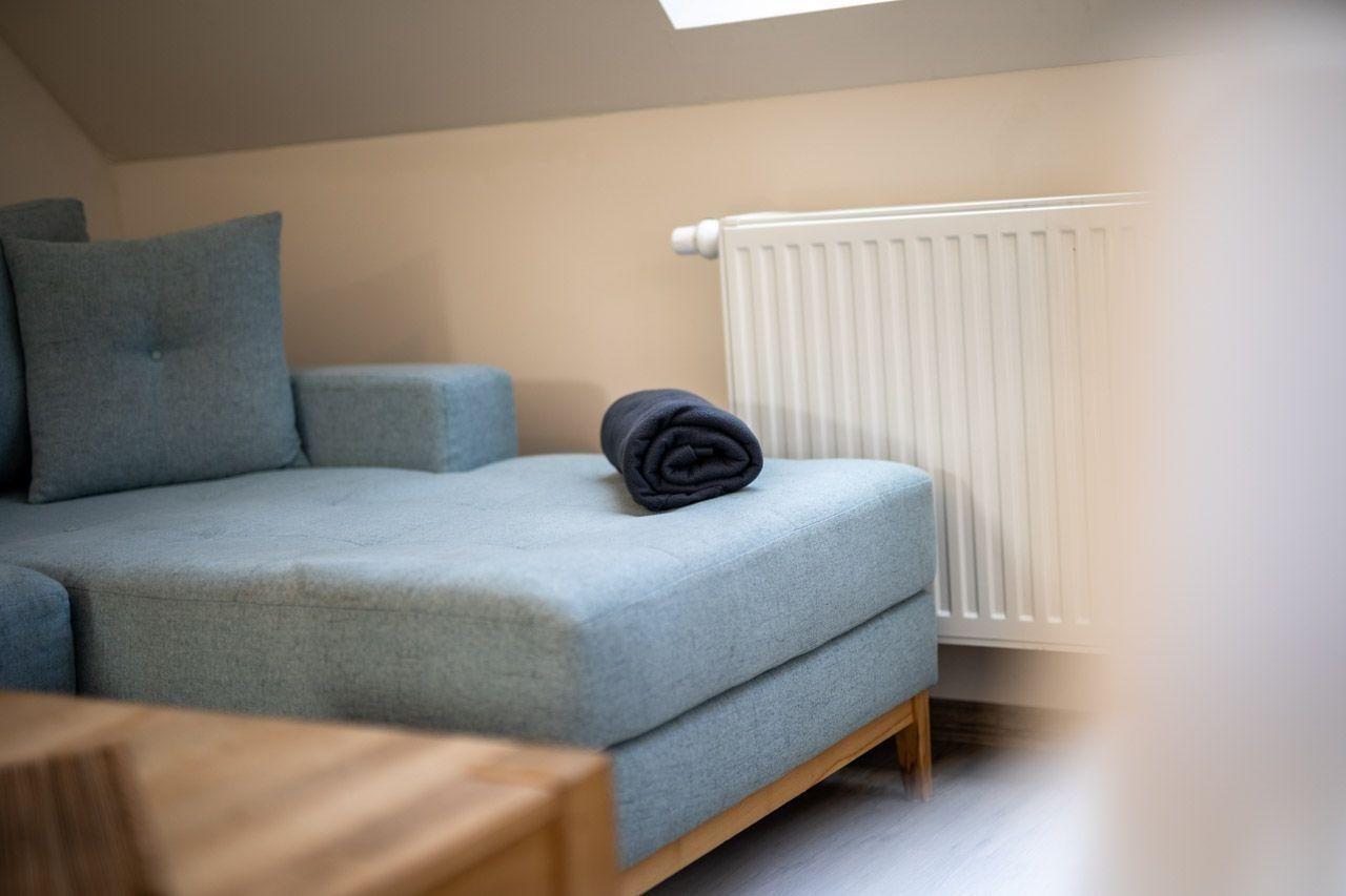 Die gemütliche Ferienwohnung bietet alles, was man für einen erholsamen Urlaub braucht. Die offene Küche ist komplett ausgestattet mit Geschirrspüler, Elektro- und Gasherd, Backofen, Kühlschrank, Kaffeemaschine, Toaster, und bietet eine Gefriermöglichkeit. Im modernen Duschbad finden sich ein Föhn, ein Spiegel und ausreichend Stauraum. Der Wohnbereich verfügt über einen Kamin für gemütliche Abende, einen TV und ein bequemes Sofa. In den 2 Schlafzimmern stehen 1 Doppelbett und 2 Einzelbetten zur Verfügung. Zudem bietet die Wohnung kostenloses WLAN, Parkplätze, einen Wasserkocher, eine Esstischgarnitur, Geschirr und Besteck, sowie einen Sonnenschirm. Allergikergeeignet ist die Wohnung aufgrund von Bodengleichen Duschen, einem Wäscheständer und einem Reinigungsmittel-Starterset. Die Gäste genießen zudem ein Badezimmer mit Fenster, einen Schrank, eine Heizung, eine Garderobe und ein Fliegengitter für eine angenehme Atmosphäre.
