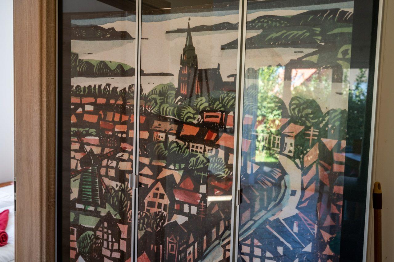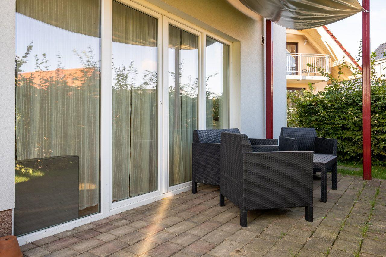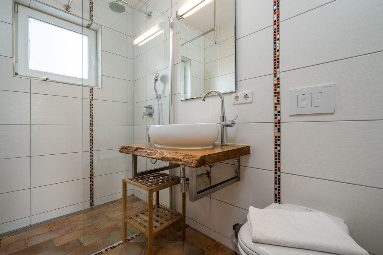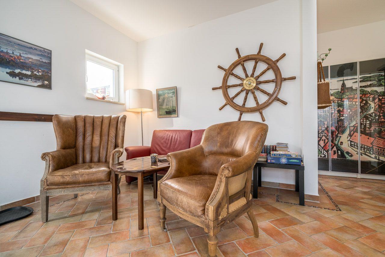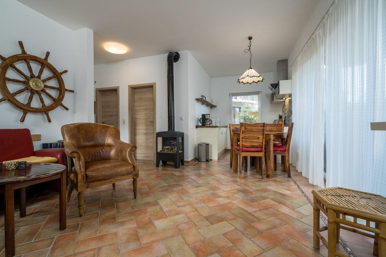 Die Ferienwohnung mit 2 Schlafzimmern befindet sich im Erdgeschoss eines Hauses. Das Ferienhaus ist Teil der Ferienhaussiedlung Seepark Röbel. Fußläufig sind Sie in 2 Minuten an der Müritz mit Liegewiese, Badesteg und Hafen. Die großzügige Wohnung bietet angrenzend an den ca. 30m² großen Wohnraum eine halboffene Küche sowie eine Terrasse. Die Küche ist voll ausgestattet mit Kochfeld, Backofen, Kühlschrank und Kaffeemaschine uvm. Das Elternschlafzimmer und das Kinderzimmer mit 2 Einzelbetten bieten Platz für 4 Personen, Gegenüber befindet sich das ebenfalls sehr geräumige und moderne Duschbad mit bodengleicher Dusche. An kalten Herbst- oder Wintertagen sorgt der Gas-Kamin für Wärme und Entspannung. Zusätzliche Extras wie Bettwäsche und Handtücher (diese sind NICHT in Ihrer Buchung enthalten), Wellnesspaket, Kaminholz oder ein Bollerwagen können über unsere Gäste-App dazu gebucht werden. Erleben Sie einen unvergesslichen Aufenthalt in dieser traumhaften Ferienwohnung an der Müritz! ? Besuchen Sie unsere Website AllerleiMeer.de für einen 3D-Rundgang und weitere Informationen.