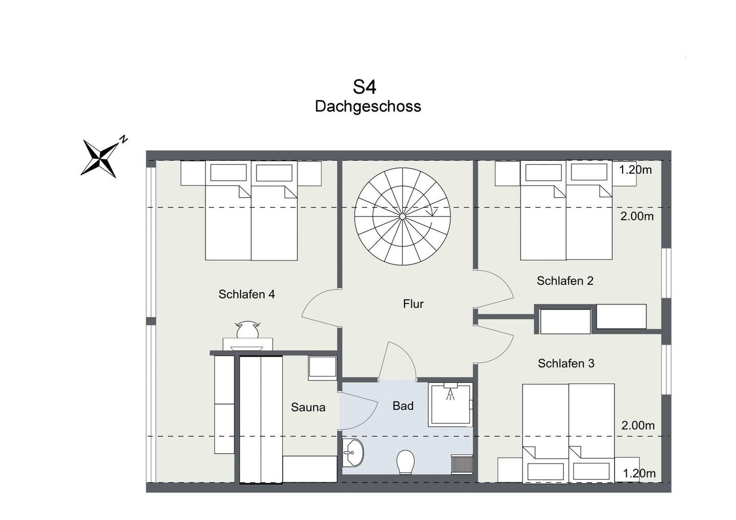 Im Obergeschoss befinden sich drei Schlafzimmer, die jeweils mit komfortablen Hotelbetten ausgestattet sind. Ein weiteres Highlight ist das Duschbad mit angrenzender Sauna, das zu einem privaten SPA-Erlebnis einlädt.