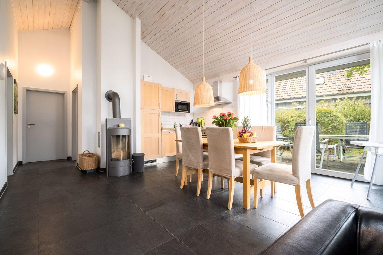Ferienhaus: 4 Personen, ebenerdig, Sauna, Kamin, offene Küche, Terrasse, Gartenmöbel, Grill, Elektroauto, Wallbox, Typ 2 Ladeanschluss, Fahrradfreundlich, Natur, Entspannung.