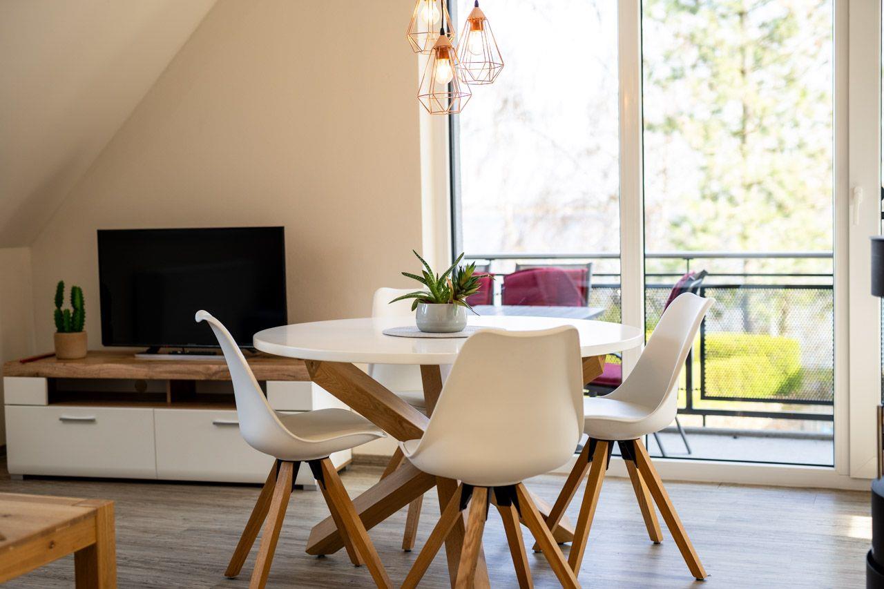 In der offenen, voll ausgestatteten Wohnküche könnt Ihr gemeinsam den Urlaubstag ausklingen lassen. Das Wohnzimmer lädt zum Verweilen ein mit einem Flachbildfernseher. Der Balkon ist direkt über den Wohnbereich zu erreichen und auch ein PKW-Stellplatz befindet sich direkt an der Ferienwohnung. Grenzenloses Surfen im Internet ist über WLAN garantiert.