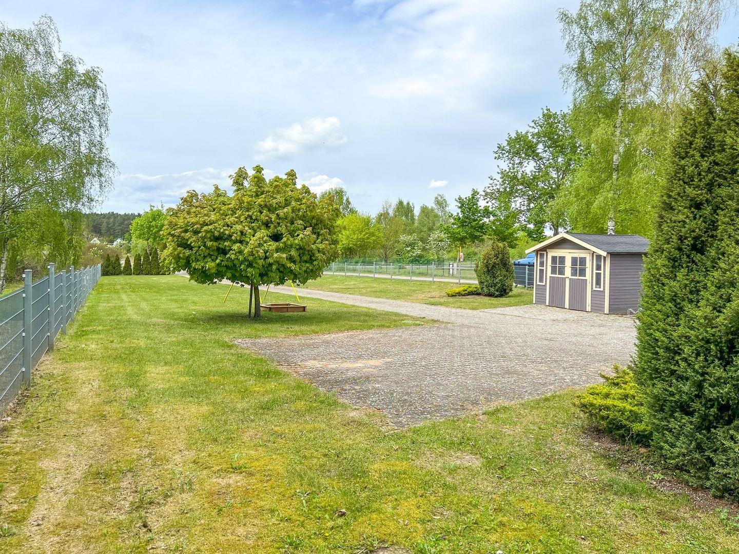 Das 1500 m² große Grundstück steht den Gästen des Ferienhauses zur freien Verfügung. Auf dem Grundstück befindet sich ein abschließbarer Schuppen.