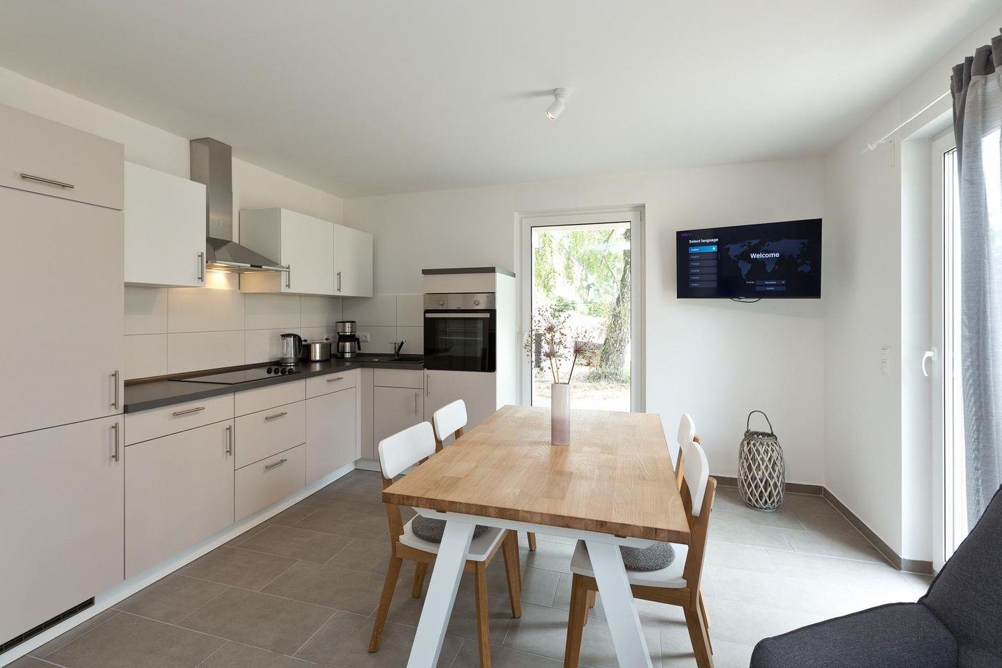 Die Küche ist mit allen Utensilien, voll ausgestattet und läd zum gemeinsamen Kochen ein. Die Fenster besitzen Außenrollos und Fliegengitter. Für Ihren PKW steht außerdem ein Parkplatz zur Verfügung. Für alle, die auch im Urlaub nicht auf das Internet verzichten wollen, wird ein kostenfreier WLAN - Zugang angeboten.