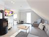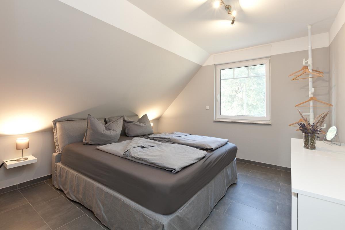 Die Ferienwohnung befindet sich im Dachgeschoss, in ruhiger Lage. Modern, gemütlich und tolles Ambiente. Ausgestattet mit 2 Schlafzimmern, einer Koch- und Wohnlandschaft, einem Kamin, einem Balkon und einer Fasssauna. Unsere Doppelboxspringbetten bieten eine angenehme Nachtruhe. Die Fenster besitzen Aussenrollos und Fliegengitter. Auf der Terrasse befindet sich ein fester Grill mit dazugehörigen Gartenmöbel. Für Familien mit Kindern, kann ein Kinderreisebett und ein Hochstuhl von uns zusätzlich aufgestellt werden, auf Anfrage. Ein PKW- Stellplatz befindet sich direkt an der Unterkunft.