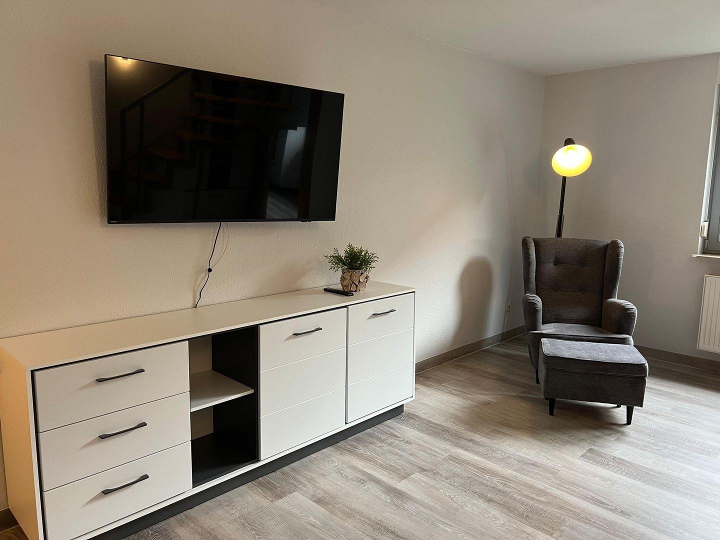 Auf der Terrasse stehen Sitzmöbel sowie ein Grill zur Verfügung. Fahrräder können an dem hauseigenen Fahrradständer angeschlossen werden. WLAN und ein PKW -Parkplatz steht Ihnen ebenfalls kostenfrei zur Verfügung.