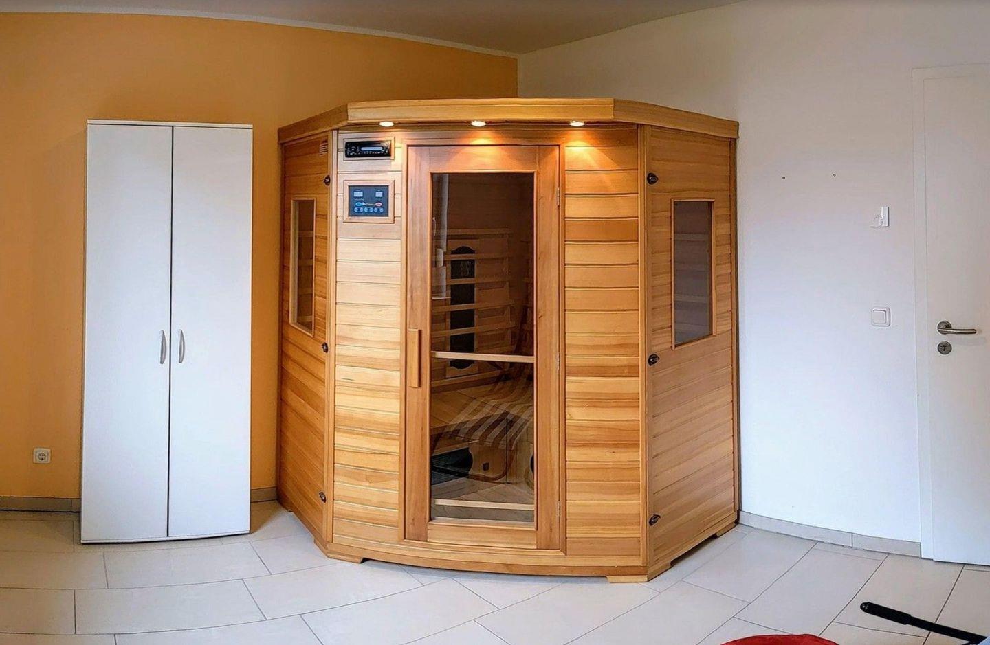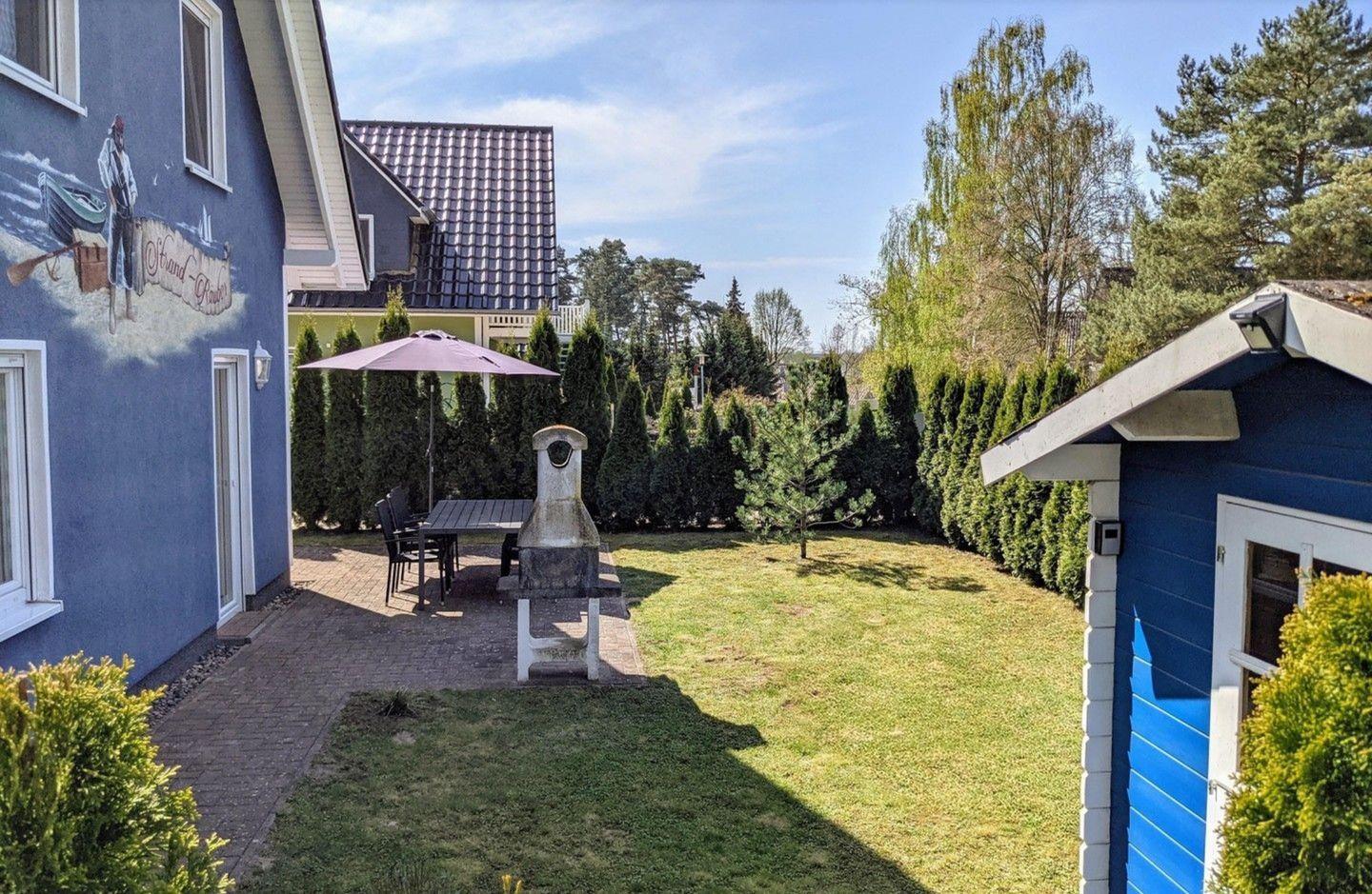 Im Erdgeschoss erwartet Sie ein großzügiger Wohn- und Essbereich mit einer voll ausgestatteten Küche, die keine Wünsche offen lässt. Hier können Sie gemeinsam kochen, essen und entspannen. Die gemütliche Sofaecke am Holzkamin sorgt an kühlen Tage für eine warme Atmosphäre. Für besondere Wellnessmomente steht Ihnen im Erdgeschoss eine Infrarotkabine zur Verfügung. Außerdem befindet sich hier ein Gäste-WC mit Dusche. Im Obergeschoss finden Sie drei helle, großzügige Schlafzimmer. Jedes mit einem Doppelbett und einem geräumigen Kleiderschrank ausgestattet. Eines der Zimmer verfügt zusätzlich über einen Fernseher. Das große Badezimmer bietet sowohl eine Badewanne als auch eine Dusche, sodass Sie hier entspannen können. Waschmaschine und Wäscheständer stehen im HWR für Sie bereit. Der Außenbereich ist ebenso durchdacht und lädt mit einer möblierten Terrasse, Garten, Sonnenliegen, Sonnenschirm, sowie einem Gartenhaus, zum Verweilen im Freien ein. Gartenmöbel und ein Kohlegrill bieten Gelegenheit für entspannte Grillabende in privater Atmosphäre. Zwei private Parkplätze vor Ort stehen für Ihre Fahrzeuge zur Verfügung.