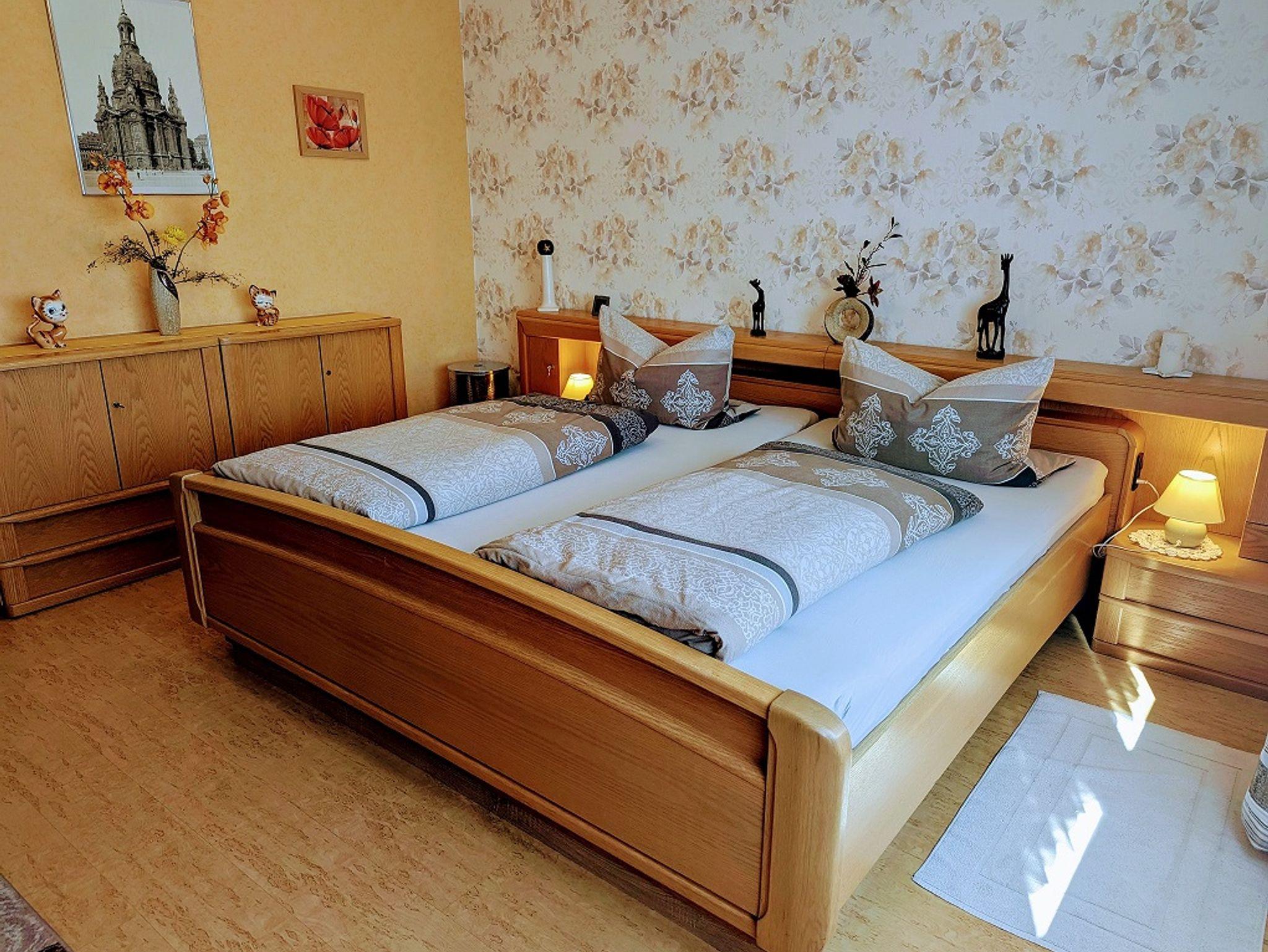 Möchten Sie fernab von Industrie und Großstadtlärm einen erholsamen Urlaub verbringen, dann sind Sie bei uns an der richtigen Adresse. Unsere 3 Zimmer Ferienwohnung Thüringer-Waldblick für 2 - 5 Personen, 84 qm ist sehr ruhig am Ortsrand gelegen mit einen herrlichen Blick zum Thüringer-Wald. Sie ist komfortabel und kinderfreundlich eingerichtet. Kinderbett und Hochstuhl kann auf Wusch gestellt werden! Kinder dürfen auch mal auf unseren Oldtimer Eicher mitfahren! Unsere 2 Schlafzimmer mit höheren Betten sind mit Bandscheibenmatratzen und verstellbaren Lattenrosten. Küche mit Geschirrspülmaschine, Mikrowelle, Kühlschrank, E-Herd und allen techn. Geräten. Gemütlichen Wohnzimmer mit TV Flachbildschirm und W-Lan. Bad mit Dusche, WC und Fußbodenheizung. Südliche Terrasse in unverbauter Lage mit Gartenmöbeln, Liegestühle, Grill und Feuerschale. Hier können Sie am Morgen den Sonnenaufgang und in der Nacht den Sternenhimmel bewundern! Wir freuen uns auf Ihren Besuch!