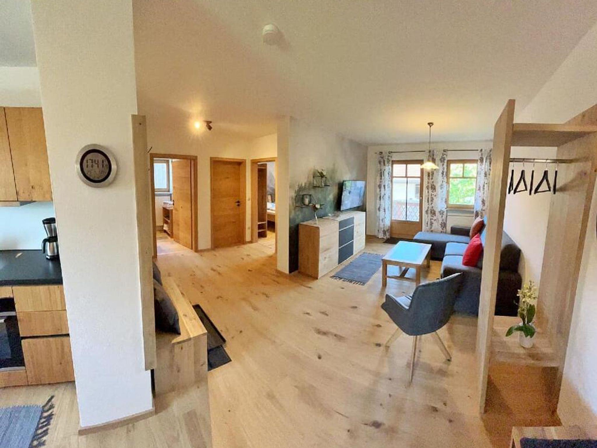 Die neu renovierte 4* Wohnung Waldblick im 1.Geschoss hat 65 qm mit zwei getrennten Schafzimmer, Dusche und WC getrennt und einen großen Wohnraum mit Küche - Eckbank mit Tisch und zwei Stühle. Die Wohnung wurde mit Vollholzmöbel vom Schreiner ausgestattet. Die Küche verfügt über eine Spülmaschine, Toaster, Kaffeemaschine, Kühl-Gefrierkombi und Wasserkocher .Zusätzlich haben Sie eine Sitz- und Essmöglichkeit am Balkon. Gerne können Sie aber auch mal im Innenhof grillen und die Sitzgelegenheit im Innenhof nutzen. Eine Parkmöglichkeit haben Sie direkt vorm Haus. Mitgebrachte Fahrräder können Sie gerne direkt nebenan unterstellen. Die Kinder haben rund um den Hof viel Platz zum toben, zum Fussball spielen, im Sandkasten eine Burg zu bauen oder einfach den Tieren zu sehen. Die Schlafzimmer verfügen über zwei Doppelbetten 1x 200x200 cm und 1x 180x200 cm. In der Wohnung befinden sich zwei TV Geräte - einen im Wohnraum und einen im Schlafraum! Gerne können Sie gegen Gebühr die Waschmaschine bzw. den Trockner nutzen.