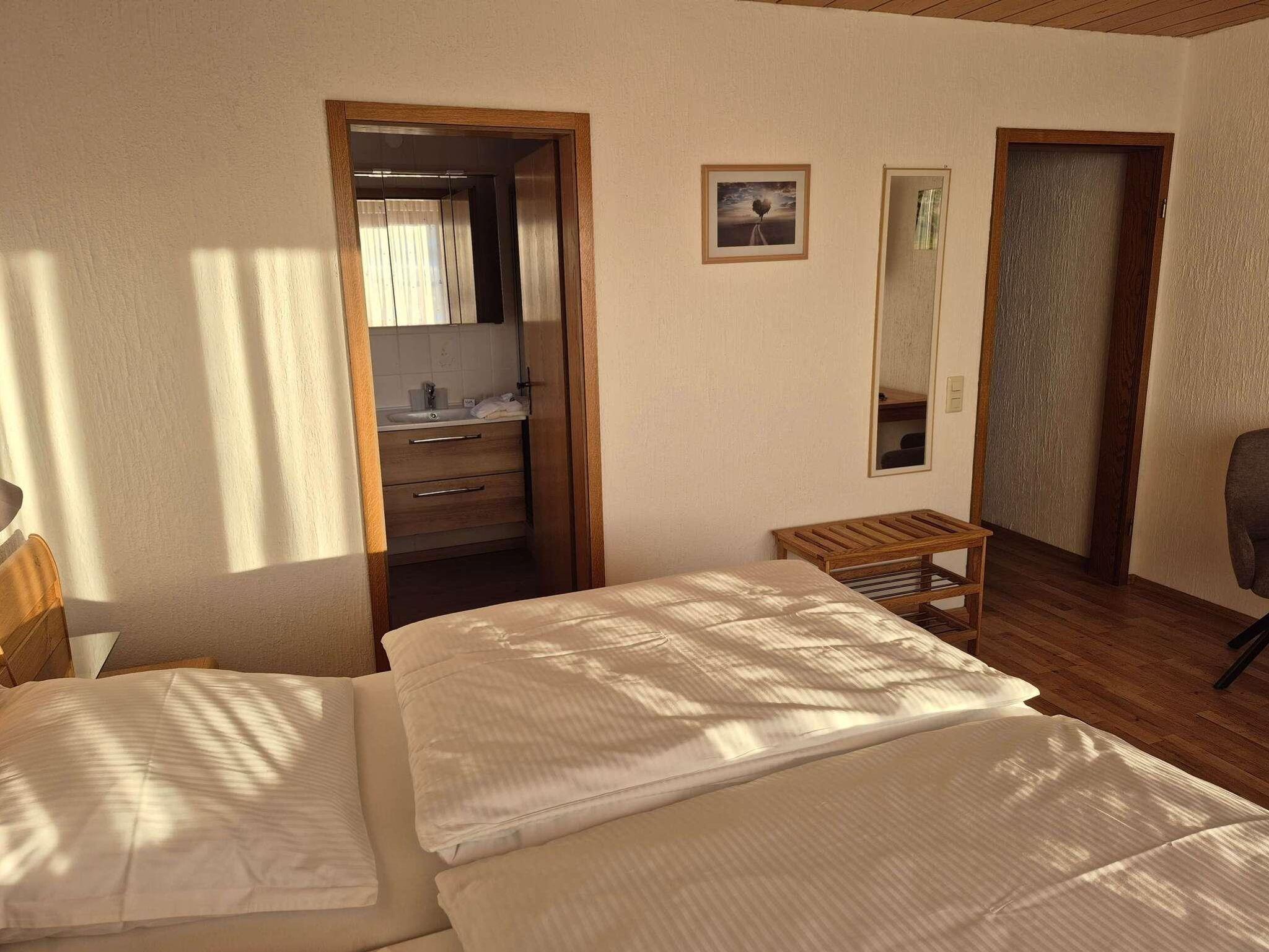 Das Doppelzimmer im Erdgeschoss ist barrierearm gestaltet und ohne Treppen erreichbar, wodurch es sich besonders für Gäste mit eingeschränkter Mobilität eignet. Das Bad ist funktional, jedoch etwas kompakter geschnitten. Vom Zimmer aus genießen Sie einen Blick in den Garten. Zur Ausstattung gehören Dusche und WC, Flachbild-TV sowie kostenfreies WLAN. Ein reichhaltiges Frühstück ist im Preis enthalten. Auch hier erhalten Sie bei einem Aufenthalt ab fünf Nächten einen Rabatt von 5 Euro pro Nacht und Person.