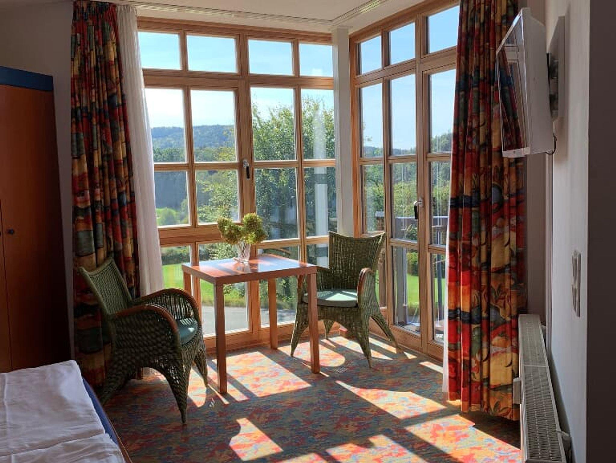 Hier im größten zusammenhängenden Waldgebirge Mitteleuropas mit zahlreichen Gipfeln über tausend Meter können Sie abseits des alltäglichen Trubels Natur pur in Ihrem eigenen Tempo genießen. Dazu ist Ihr Feriendomizil zu jeder Jahreszeit ein idealer Ausgangspunkt für viele Freizeitaktivitäten: eBiken, Radeln, Mountainbiken: In nur 150 m Entfernung erreichen Sie das Schwarzachtal und haben unmittelbare Anbindung an den „Schwarzachtal Rad- und Wanderweg“. Dort, am Oberpfälzer Heimatmuseum, gibt es eine kostenfreie e-bike Akku-Ladestation, im 3 km entfernten Rötz können e-bikes auch gemietet werden. Golfspielen: Für die Golfer unter Ihnen bietet der 18-Loch Golfplatz neben dem Golfspiel einen herrlichen Ausblick auf den Eixendorfer See und die Höhenzüge an der Grenze zur Tschechischen Republik. Die 18 Bahnen ziehen sich wie ein Rundwanderweg um das Dorf Hillstett, Bahn 6 führt unmittelbar vor Ihrem Ferienappartement entlang. Nach Beendigung Ihrer Golfrunde entspannen Sie in dem Clubhaus in freundlicher,familiärer Atmosphäre bei gutem lokalen Bier, selbstgekochten kleinen Mahlzeiten oder herrlichen Kuchen. Als Gast der Ferienwohnung erhalten Sie 20 Prozent Ermäßigung auf das Greenfee. Für Golfeinsteiger ist in Kursen zum Erreichen der Platzreife eine kostenlose 3-monatige Clubmitgliedschaft mit eingeschlossen. Wandern, Nordic Walking: Viele Ortschaften des Oberen Bayerischen Waldes bieten herrliche Rundwanderwege und sind durch ein gut ausgebautes Wanderwegenetz miteinander verbunden. Vor Ihrem Ferienappartement beginnt der unmittelbare Einstieg in den ca.15 km langen Seeweg rund um den Eixendorfer See. Wasserspaß: Schwimmen können Sie in den zahlreichen Seen der näheren Umgebung, in attraktiven Freibädern in Rötz sowie Neunburg oder bei kalten Temperaturen im Aqua-Fit in Waldmünchen. Der Eixendorfer See (kein Badesee !) und die Schwarzach empfehlen sich zum Segeln, Kajakfahren, Stand-up Paddeln und bieten Anglern ein reiches Fischrevier. Reiten: Reiter*innen können im 3 km entfernten Seebarn auf einem großen Reiterhof ihrem Hobby nachgehen. Wintersport: Je nach Wetterlage stehen sowohl Langlaufloipen in der näheren Umgebung als auch alpine Abfahrtstrecken im Raum Furth im Wald (ca. 30 km) und am Hohenbogen (ca. 50 km) zur Verfügung. Kultur: Auch den Kulturinteressierten unter Ihnen wird in der Umgebung des Ferienappartements einiges geboten. In nur 200 m Entfernung liegt die Freilichtanlage des Oberpfälzer Handwerksmusuems mit einer Dampflokomotive aus dem Jahre 1934, ein Dampfsägewerk und eine von Wasserkraft angetriebene Schneidsäge. In den Schauräumen des Museums kann man nachvollziehen, wie Handwerker zu Beginn des 20. Jahrhunderts gelebt und gearbeitet haben. In der Weihnachtszeit zaubern zahlreiche Weihnachtsmärkte in der näheren und weiteren Umgebung ein stimmungsvolles Ambiente. Zu ihnen zählen die Weihnachtsmärkte in Rötz und Neunburg vorm Wald, Schloss Guteneck oder auch in Regensburg. Festspielzeit ist im Sommer angesagt. Auf vielen Festspielbühnen können Sie historische Schauspiele (Märchen und Zeitreisen auf der Schwarzenburg in Rötz, dem Burghof in Neunburg, in Waldmünchen oder Furth im Wald) oder Konzerte genießen. Ein besonderes Highlight sind die Thurn und Taxis-Schlossfestspiele im ca. 60 km entfernten Regensburg. Entspannen: Zu Ihrem Verwöhnprogramm könnten verschiedene Wellness- und Fitnessangebote zählen, die für Sie als externer Gast in dem benachbarten Hotel als Tageswellness buchbar sind. Wenn Sie Ihr „Urlaubsmenü“ mal nicht selbst zubereiten wollen, können Sie Ihren Urlaubstag in dem nur 100 m entfernten Hotel auf Vorbestellung mit einem reichhaltigen Frühstücksbuffet beginnen und, sollte die Küche in dem Ferienappartement mal „kalt bleiben“, den Tag in der Museumsschänke Salzfriedlhof direkt am Eixendorfer See mit einem zünftigen bayerischen Essen ausklingen lassen. Weitere Landgasthöfe in der Nähe empfehlen sich mit ihrem anerkannt gut bürgerlichen Essen zu äußerst günstigen Preisen, wie man sie nur noch aus wenigen Urlaubsregionen Deutschlands kennt. Sie können sich aber auch in dem direkt am Feriendorf gelegenen Hotelrestaurant von einem Sternekoch verwöhnen lassen.