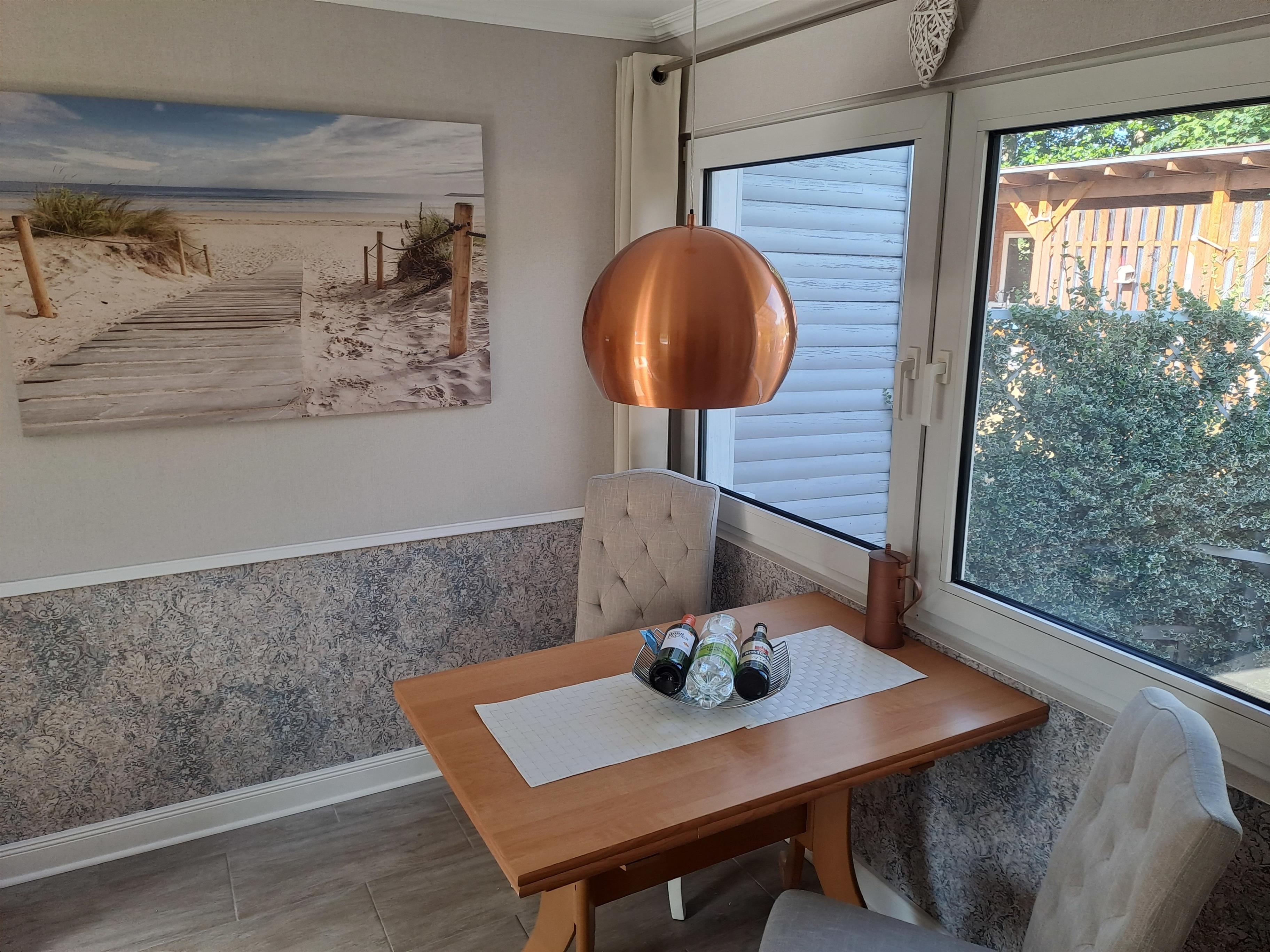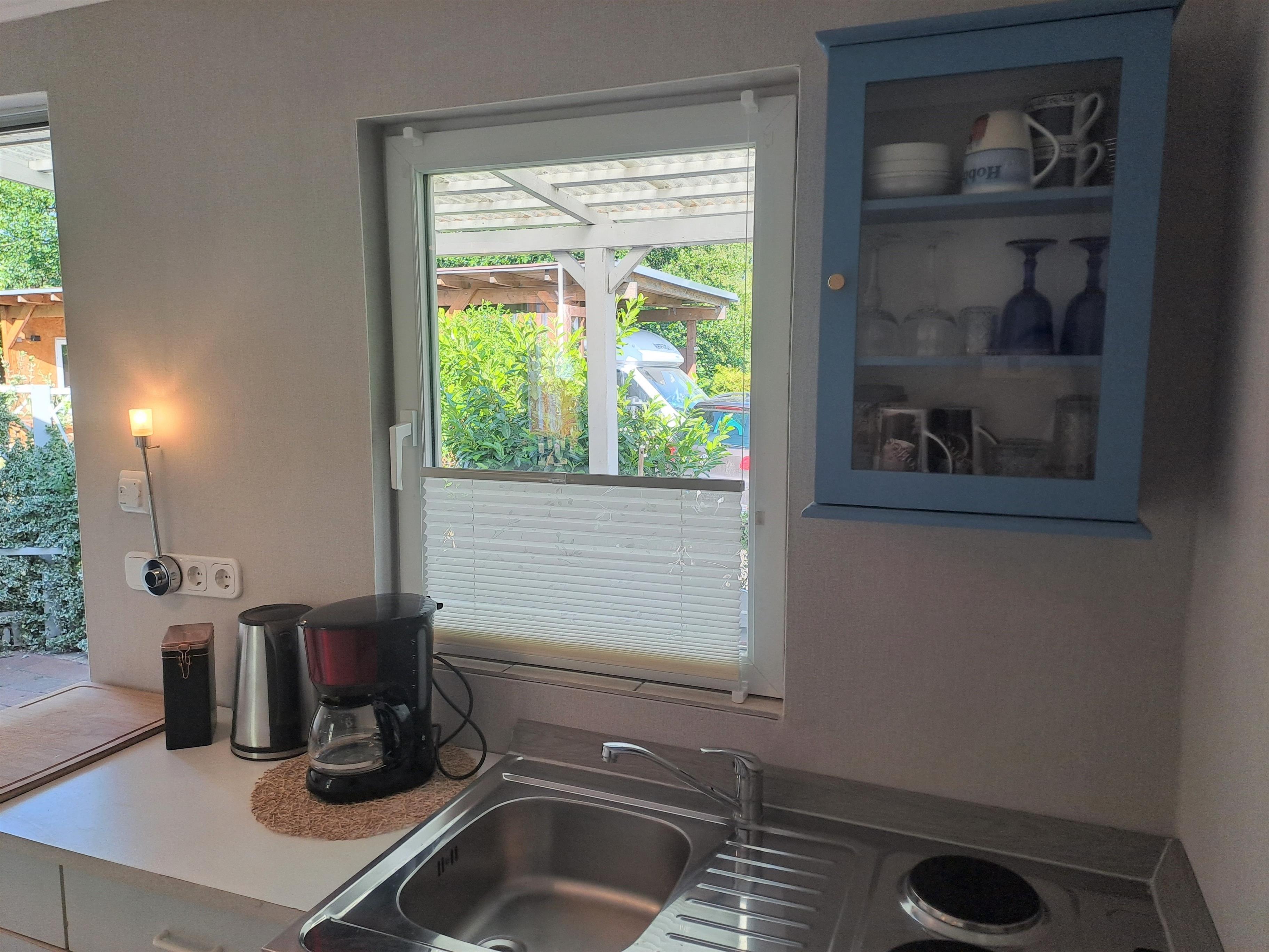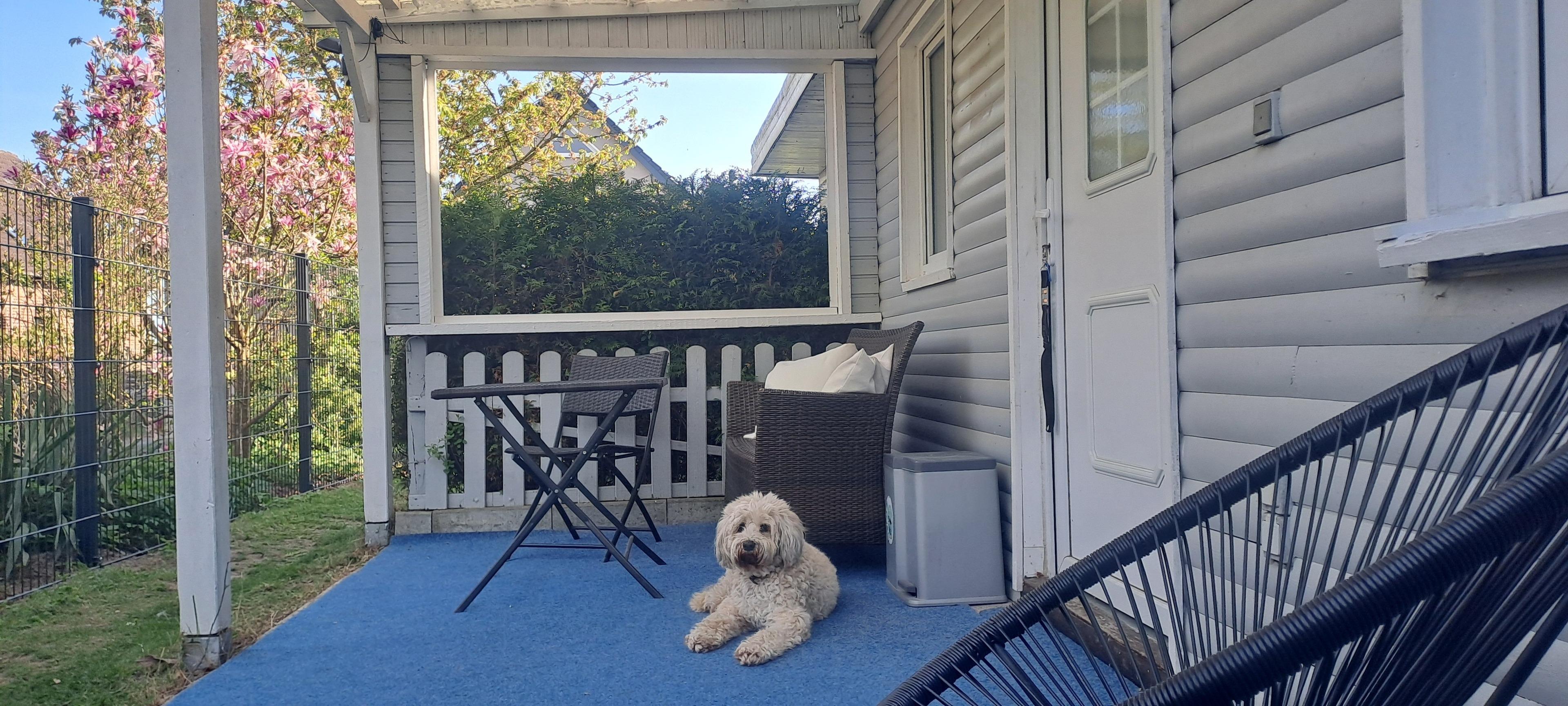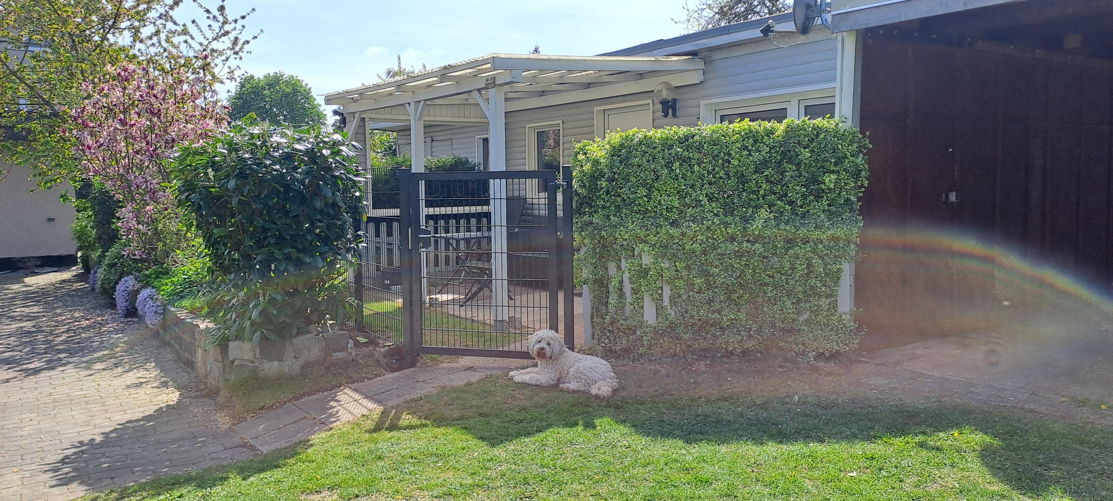Das Ferienhaus von 30qm ist für zwei Personen ausgelegt. Für die Größe von 30qm bieten sich idealerweise maximal zwei mittelgroße Hunde an. Direkt vor dem Ferienhaus befindet sich die kleine umzäunte Terrasse mit Tisch und Stühlen. Manchmal besucht uns auf dem Grundstück unsere Draußenkatze Cleo oder auch die Nachbarskatze. Der Sommerbungalow kann von Monat März bis Anfang November gebucht werden.