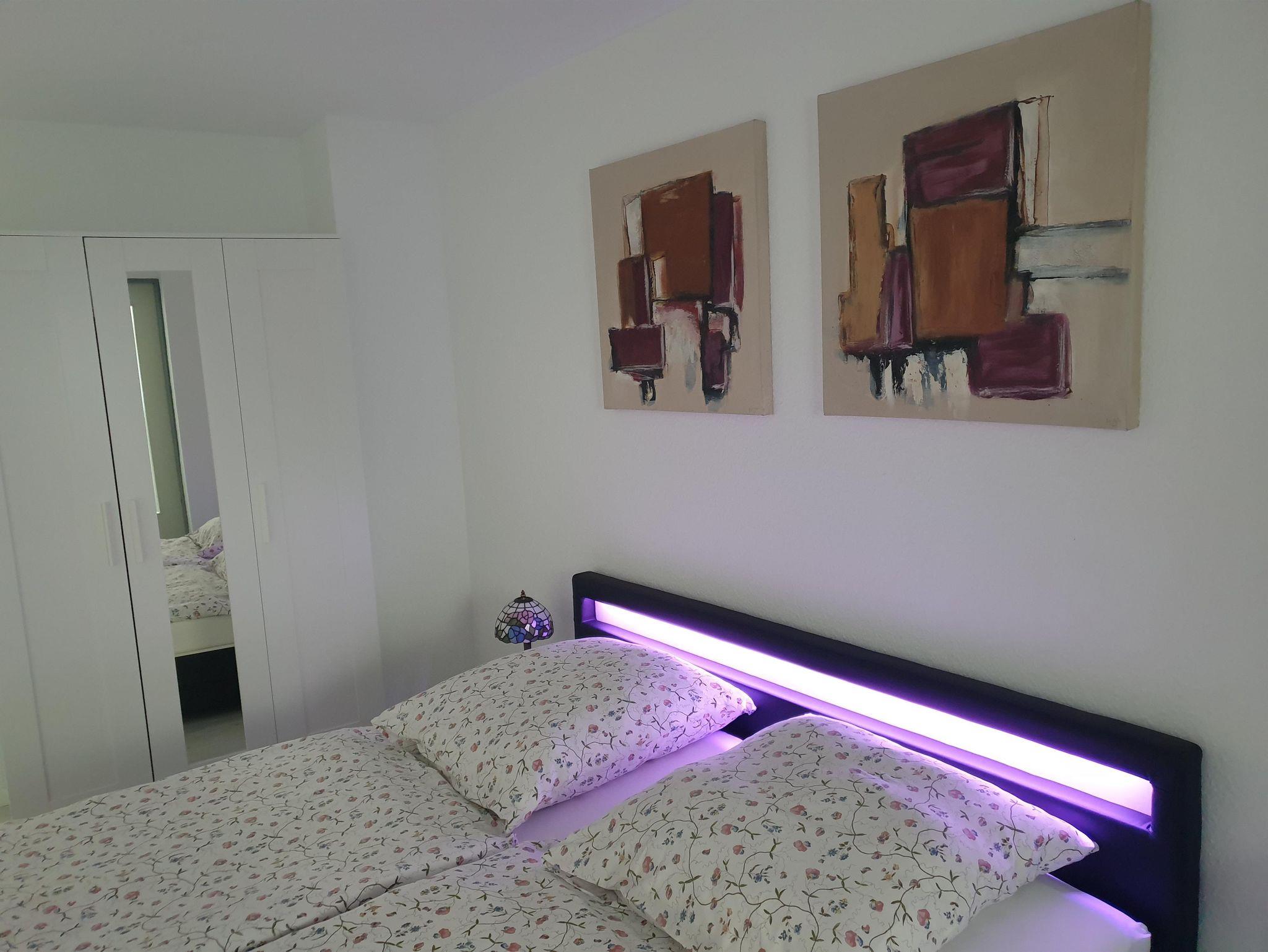 Die Wohnung ist modern und geschmackvoll eingerichtet, wobei Wert auf Komfort und Gemütlichkeit gelegt wurde. Der Wohnbereich ist großzügig geschnitten, mit bequemen Sitzgelegenheiten und einem großen Fenster, das viel natürliches Licht hereinlässt. Ein Flachbildfernseher und kostenloses WLAN sorgen für Unterhaltung.