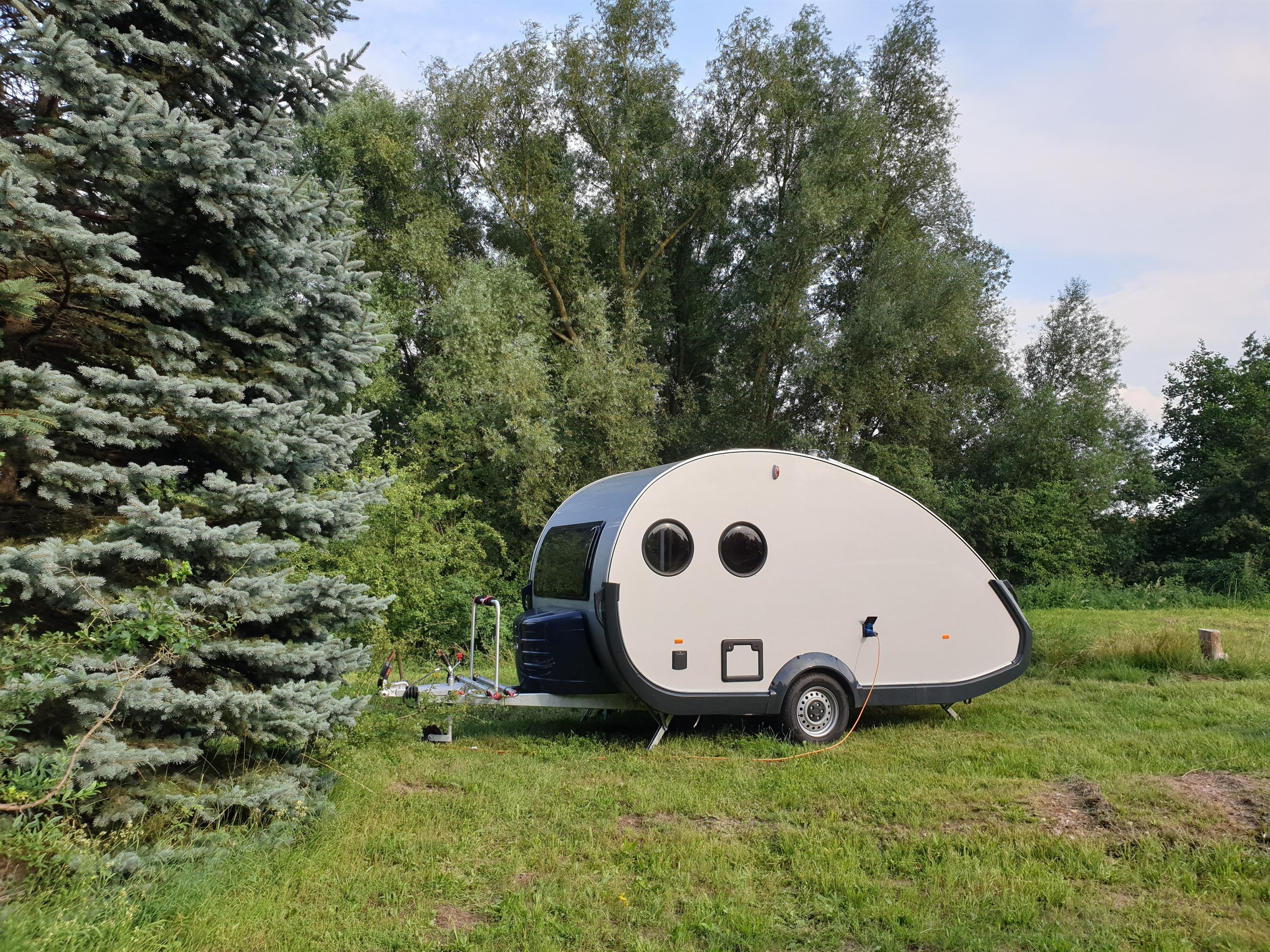 Dein Zuhause auf dem Quaduxenbarg, das ist der T@B 400. Ein komplett ausgestatteter Wohnwagen mit praktischer Kochzeile, Sitzbereich und Doppelbett. Der T@B steht auf unserer Camper Wiese. Lass den Alltag hinter Dir und gönne Dir einige ruhige Tage in naturnaher Umgebung.