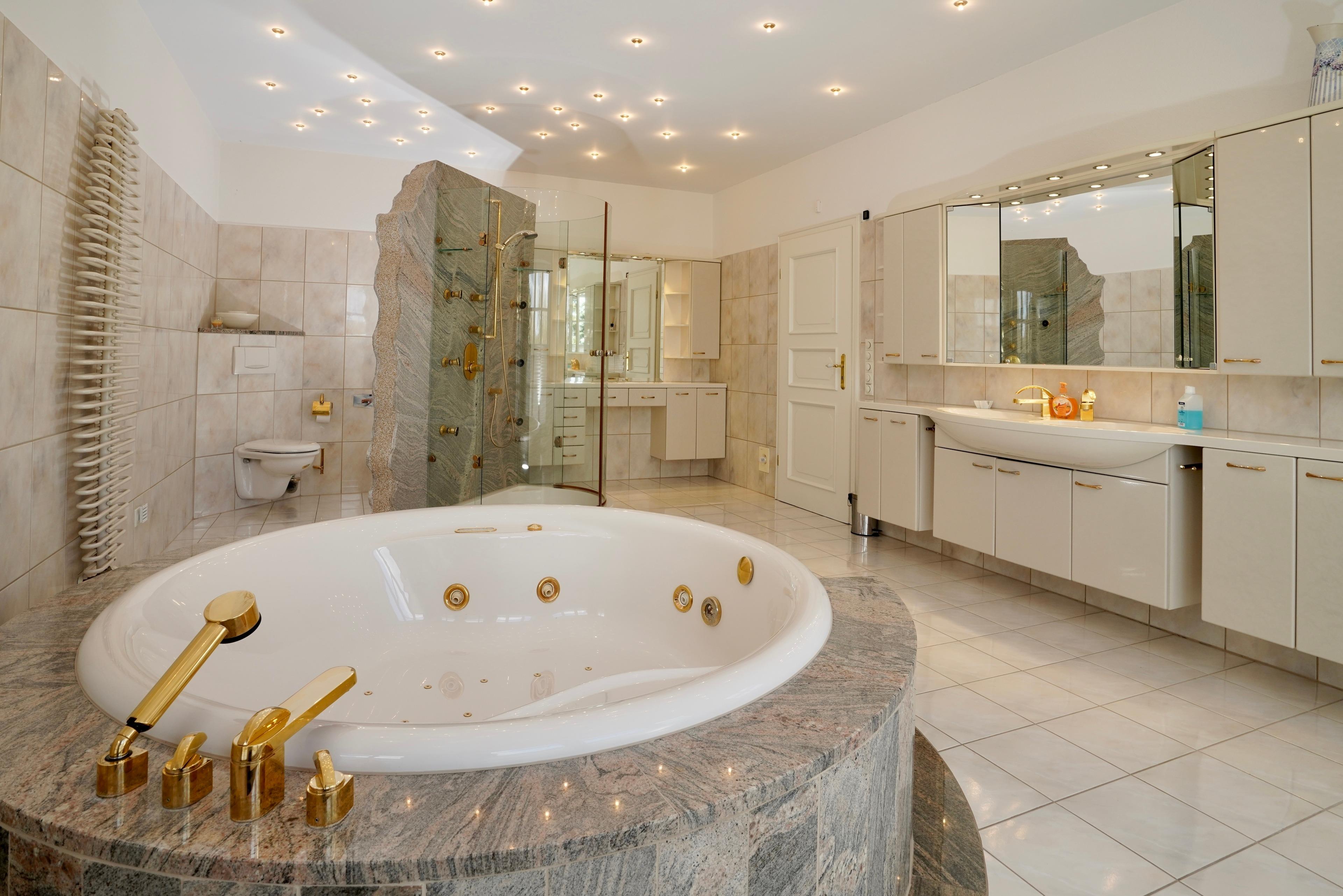 Willkommen in unserer luxuriösen Sterne-Villa, einem Paradies der Entspannung und des Komforts. Mit einem Indoor-Pool, einer Sauna und einem gemütlichen Kamin bietet dieses elegante Anwesen auf 570 Quadratmetern Wohnfläche alles, was das Herz begehrt. Die umfangreichen Annehmlichkeiten umfassen auch ein voll ausgestattetes Fitnessstudio mit ca. 20 Geräten.