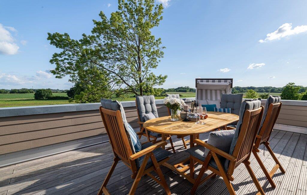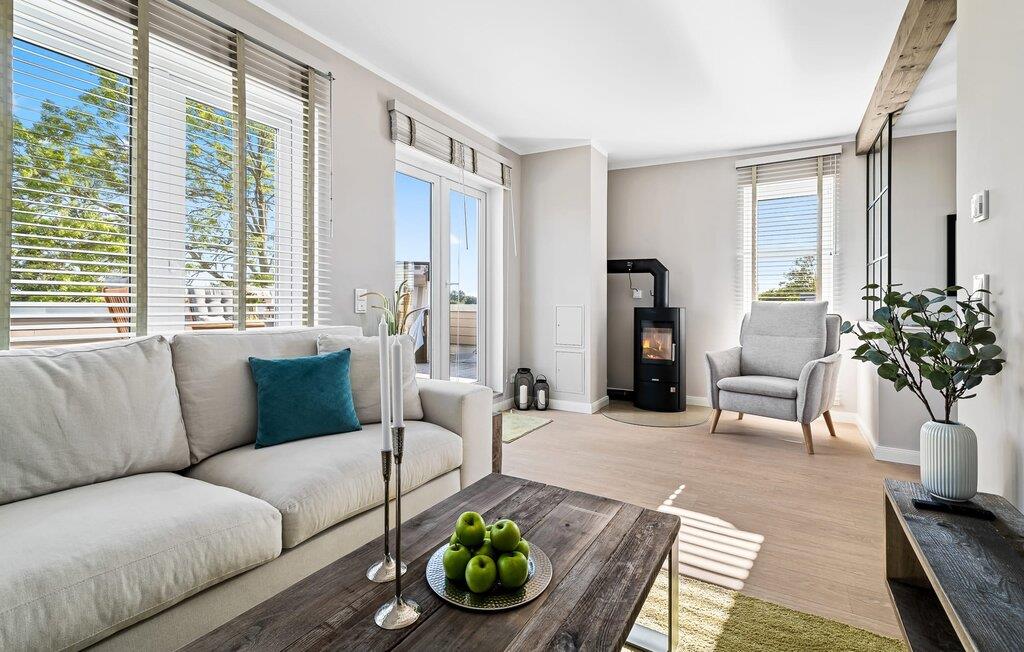 Ferielejligheden Rüm Hart bringer Sylter-flair til Østersøen! Den rummelige og rummelige maisonette-ferielejlighed på første og anden sal byder jer velkommen med elegant og tidløs indretning og imponerer med en direkte udsigt over de naturbevarende strandenge og marker. Sandstranden Weidefeld med kiosk, restaurant og strandstole ligger inden for gåafstand, og den travle havnepromenade i feriestedet Østersøen er et fantastisk sted at slentre og beundre havnebiografen. Når I træder ind i ferielejligheden på første sal, begynder jeres ferie fra første øjeblik. I befinder jer i lejlighedens afslapningsområde. Der er tre soveværelser til rådighed på denne etage. Uanset hvilken I vælger, er I garanteret en afslappende nat. Alle værelser er udstyret med rummelige dobbeltsenge og fjernsyn. Også på denne etage er der et veludstyret badeværelse med bruser i gulvniveau og infrarød sauna til jeres helt egne wellness-øjeblikke. Når I ankommer til anden sal, bliver I mødt af Rüm Harts store hjerte, det åbne opholds- og spiseområde med gulv-til-loft vinduer og den tilstødende terrasse. Med udsigt over de naturbevarende strandenge og mod Østersøen, efter det frisiske motto "Rüm Hart, Klaar Kiming" (stort hjerte, bred horisont). At slappe af i den hyggelige opholdsstue, nyde naturens stilhed ud af vinduet eller starte en filmaften sammen er afslapning og rekreation. Hverdagen bliver mere og mere fjern og skulle vejret nogensinde tage en nordlig side, giver pejsen med sit knitrende bål endnu mere komfort. Det integrerede køkken er perfekt udstyret og vil få amatørkokkenes hjerter til at slå hurtigere. På den store terrasse med sin sydvestlige orientering og en drømmeudsigt kan I arrangere hyggelige grillaftener, slappe af komfortabelt i strandstolen eller nyde solen på liggestolen. Et andet badeværelse med et ekstra toilet, håndvask og badekar byder på plads nok og alternative muligheder til flere personer og afrunder funktionerne i denne oase af velvære, som sikrer afslapning på ethvert tidspunkt af året. Foran ferielejligheden finder I to private parkeringspladser. Vores yndlingssted: efter en solrig dag på stranden, afslutte aftenen på terrassen med et glas vin og en god bog... Hvis I booker med en hund, beder vi jer venligst oplyse racen på forhånd Bemærk, at OstseeResort Olpenitz stadig er under opbygning. Bemærk venligst: OstseeResort Olpenitz er meget populært, og der bygges fortsat i parken. Ikke desto mindre kan I se frem til en 5-stjernet standard og et førsteklasses ophold. Byggeaktiviteterne kommer ikke til at forstyrre jer på ferien, og derfor gives der ikke yderligere afslag i prisen.