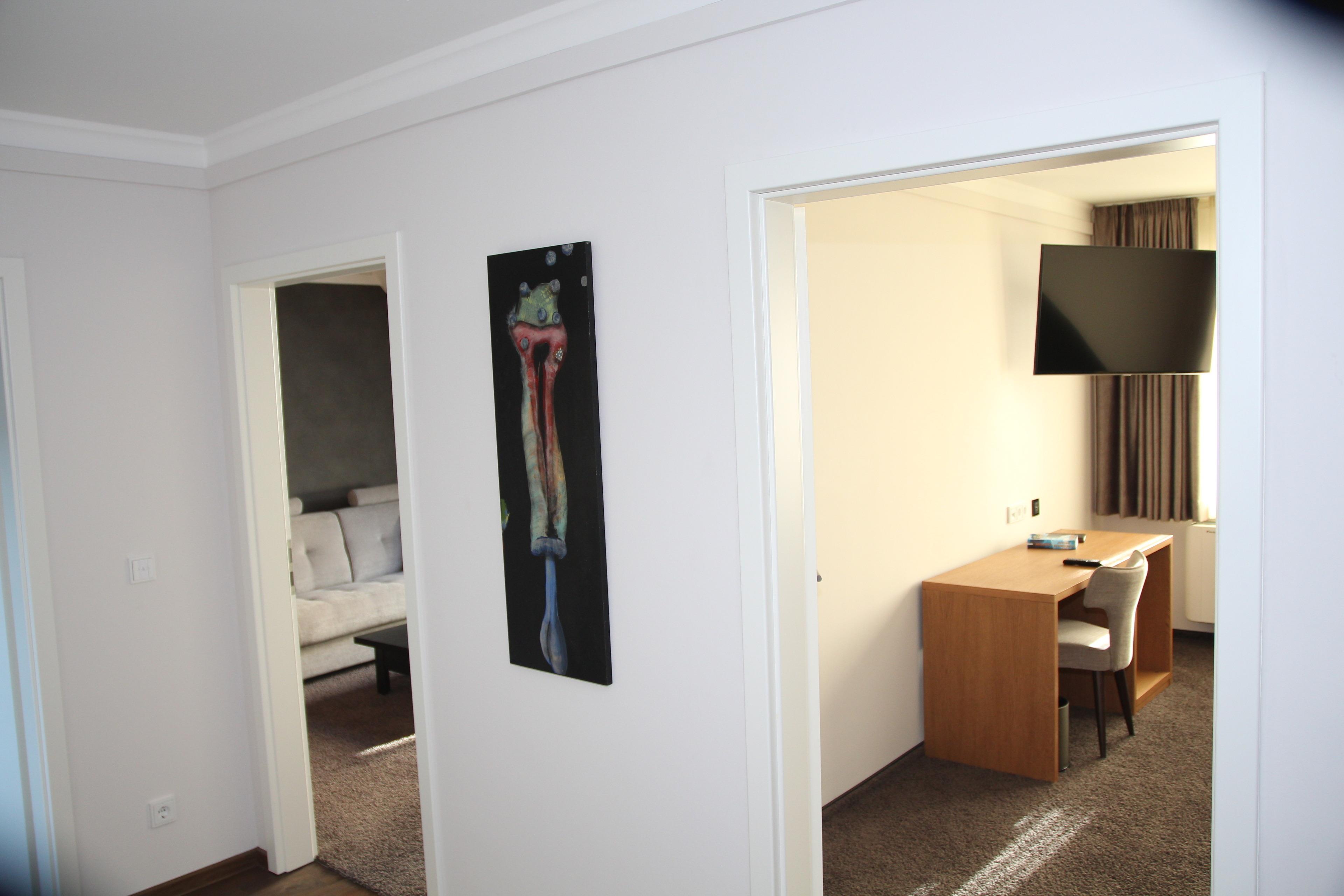 Im Schlafzimmer und im Wohnzimmer sind 43 Zoll Flatscreen Fernseher mit Sky angebracht. Die King-Size Boxspringbetten garantieren höchsten Schlafkomfort. Ein ausziehbares Schlafsofa im Wohnzimmer sorgt für Platz für weitere Gäste. Wlan ist in allen Appartements vorhanden. Die Küchenzeile ist mit allen notwendigen Utensilien ausgestattet.