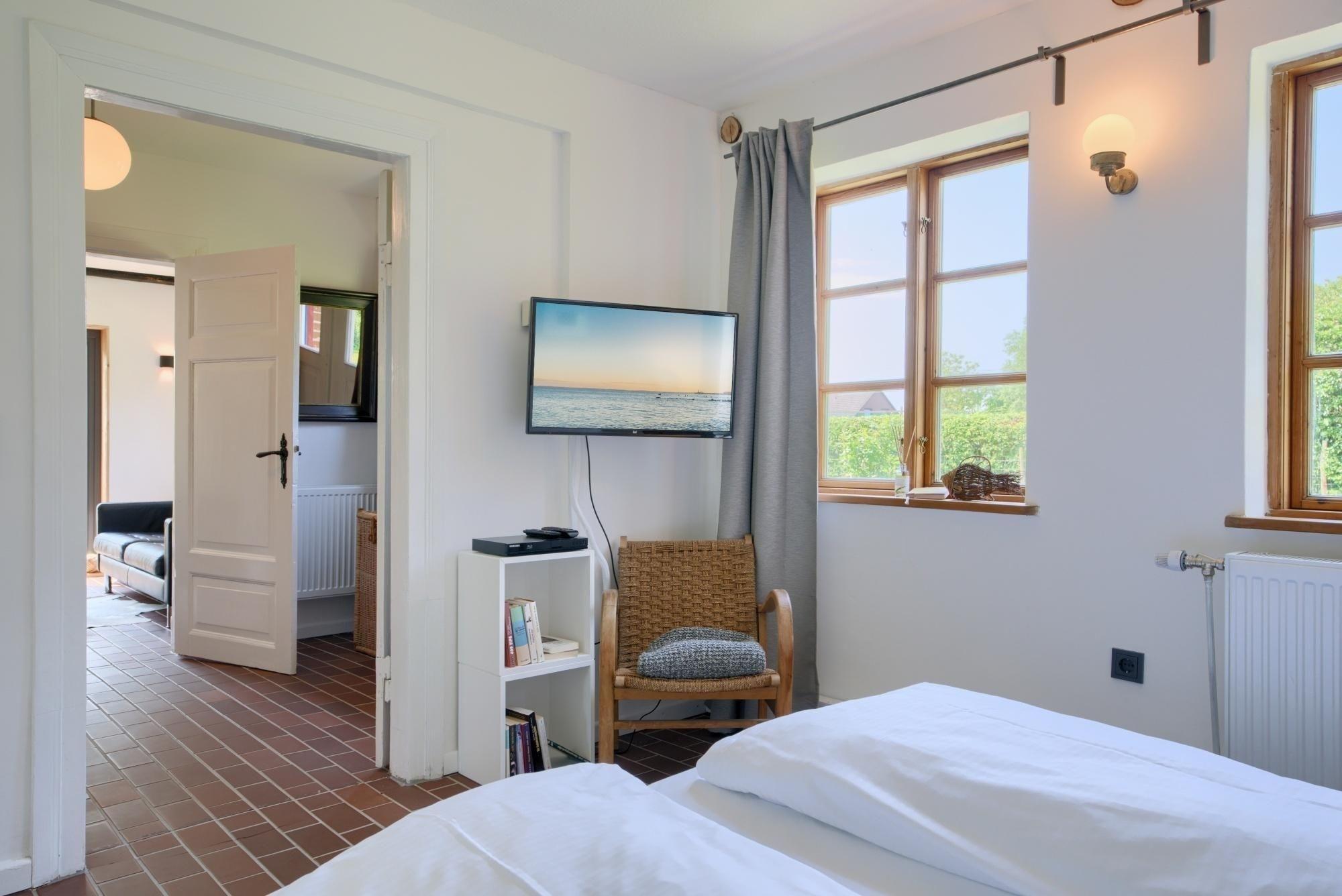 Schlafzimmer 1: 1 Doppelbett (2x 90x200 cm), TV und Blue-Ray-Player, Kleiderschrank