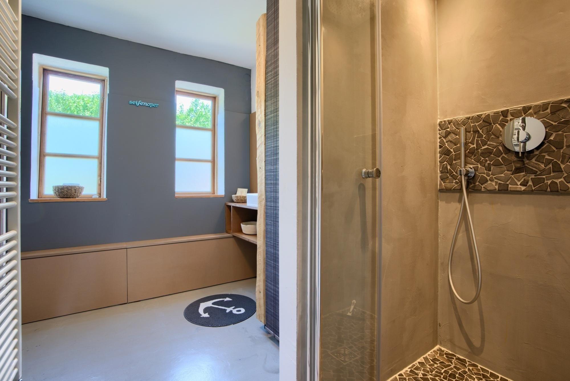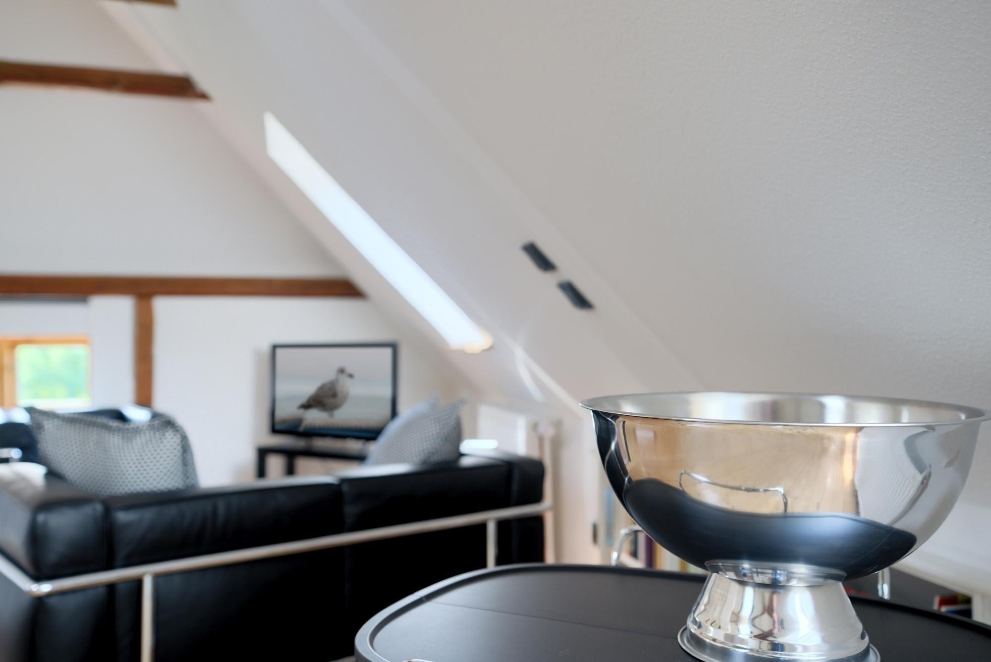 Die Wohnfläche teilt sich in ein großzügiges Erdgeschoss mit einem separaten Schlafzimmer mit Doppelbett (2x 90x200 cm), TV und Blue-Ray-Player, einem Wohnzimmer mit TV und Blue-Ray-Player sowie einem Duschbad mit Fußbodenheizung und einer offenen Küche mit Essbereich für 4 Personen und direktem Terrassenzugang auf. Die Küchenausstattung umfasst praktische Annehmlichkeiten wie eine Kaffee-Padmaschine (Senseo), Kaffee-Zubereiter, Pürierstab, Zerkleinerer, usw. - Hier werden Sie problemlos leckere Ferienmahlzeiten zubereiten können. Im Obergeschoss befindet sich ein offener Galerie-Wohnbereich mit einem eingebauten Kojenbett (100x200 cm) in einer Schlafnische und einem weiteren Doppelbett (140x200cm), TV und Blu-Ray-Player sowie einem Gäste-WC. Im Außenbereich erwarten Sie Highlights wie z. B. eine möblierte Sonnen-Terrasse sowie zwei weitere, kleine, gepflasterte Terrassen im Garten. Dort stehen Ihnen je zwei Sonnenliegen zur Verfügung, die für Erholung und Entspannung sorgen oder dazu einladen, ein gutes Buch zu lesen.