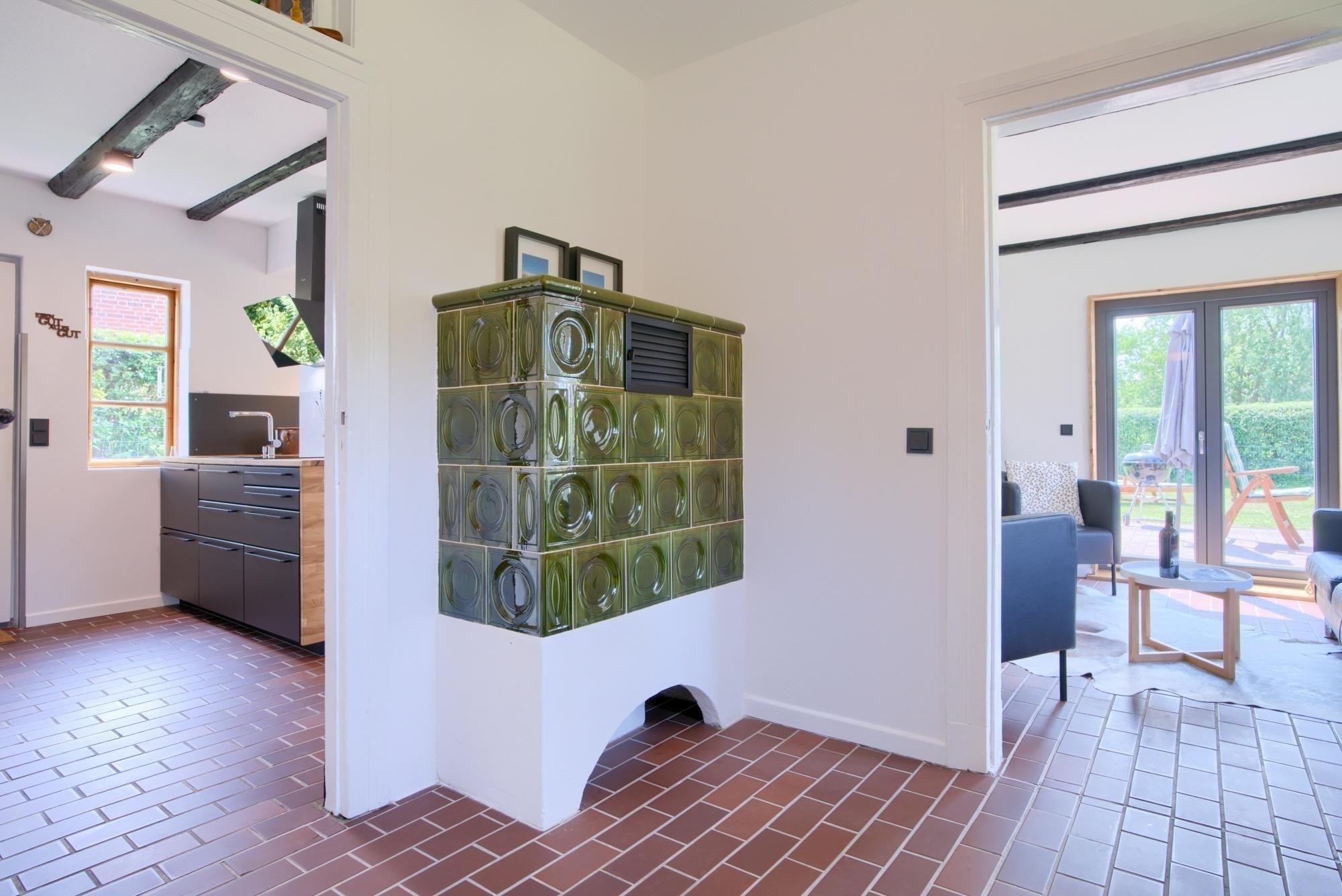 Aktueller Hinweis; Der Kachelofen im Erdgeschoss darf aus Sicherheitsgründen auf keinen Fall genutzt werden.