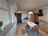 Vom Flur aus gelangt man in die geräumige Küche mit zweigeteilter Küchenzeile. Hier finden Sie alle möglichen Küchenutensilien, um sich zu versorgen. Ceranfeld mit Backofen und Dunstabzugshaube, Spüle sowie Spülmaschine. Ein Wasserkocher, eine Kaffeemaschine sowie ein Kühlschrank und eine Mikrowelle gehören selbstverständlich auch dazu. Ein kleiner Esstisch mit Stühlen lädt zum Frühstücken ein.