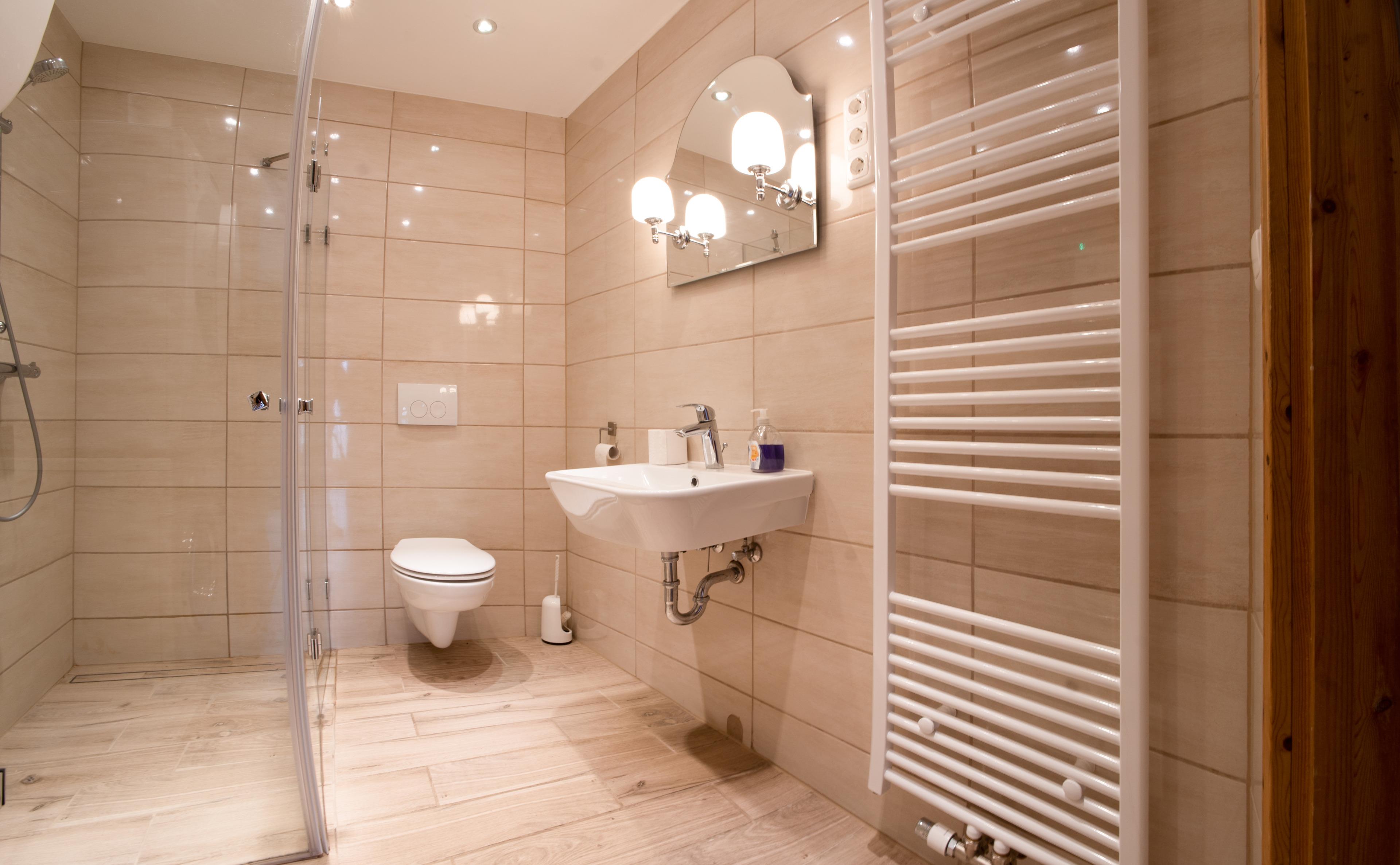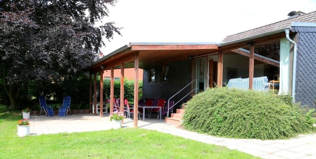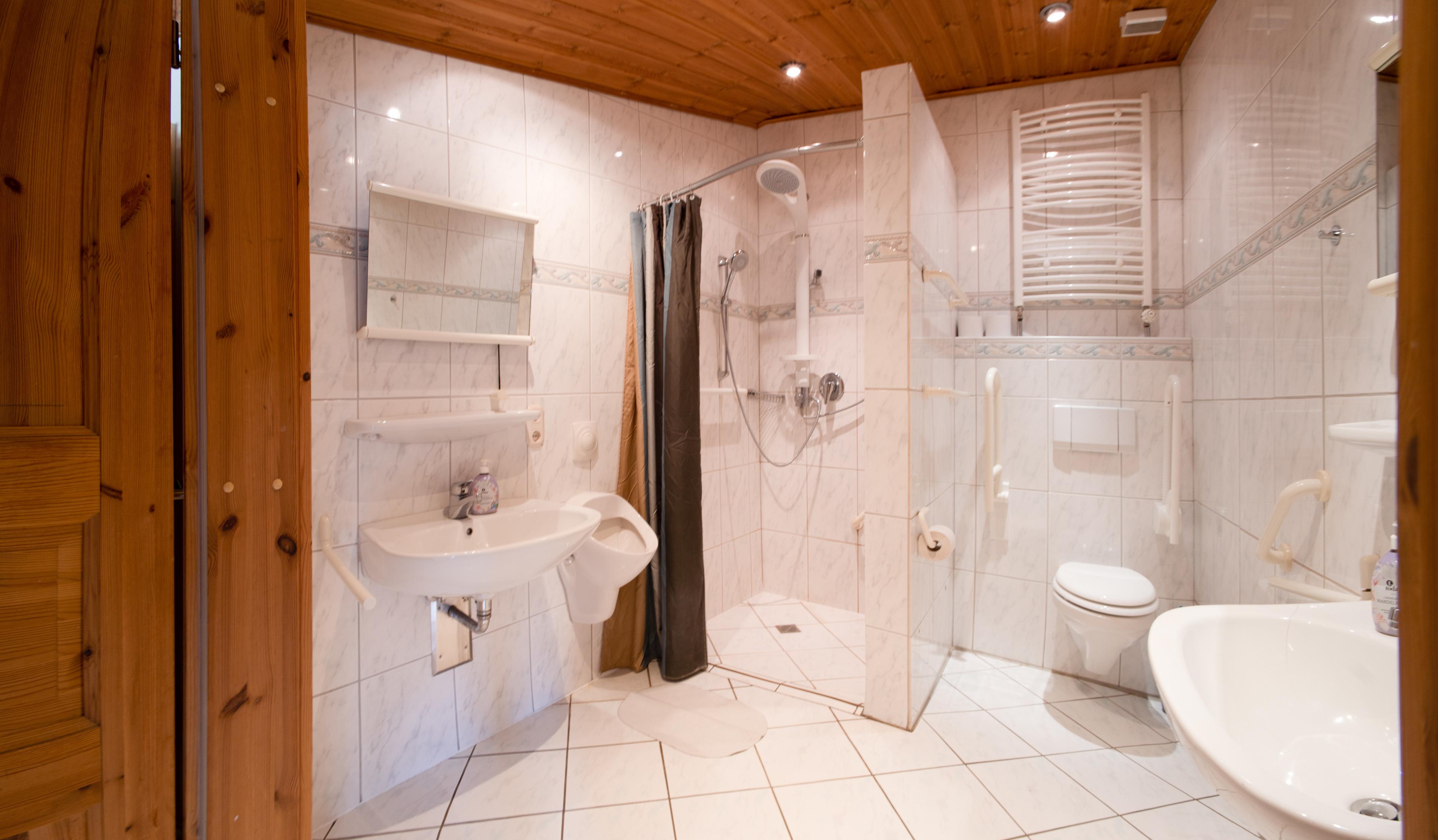 Das Haus ist für Rollstuhlfahrer geeignet. Im Erdgeschoss befinden sich 4 Schlafzimmer, ein Wohnzimmer, ein Frühstückszimmer, 2 Küchen, ein im Juni 2020 renoviertes Duschbad mit WC, Waschmaschine und Trockner sowie ein weiteres Duschbad mit WC. Im Souterrain ist ein weiteres im Juni 2020 renoviertes Schlafzimmer mit 2 Einzelbetten mit ebenfalls renovierter Dusche/WC sowie eine Sauna. Das Wohnzimmer verfügt über einen Kaminofen und hat Zugang zur überdachten Terrasse mit Grill und anschließender großer Rasenfläche.