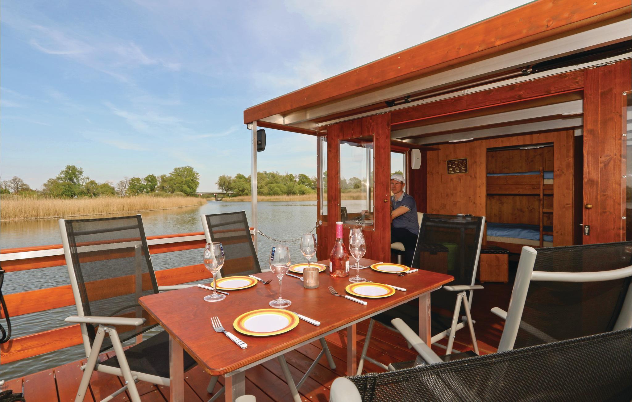 Husbåden tillader en lang række anvendelser, herunder som et liggende feriehus eller som det perfekte transportmiddel til at udforske Beetzsee med sine mange forankrings- og fortøjningsmuligheder og området. I kan også fiske, grille eller bare nyde solen om bord. Husbåden er et perfekt feriemål, især for cyklister, fordi I kan parkeres jeres cykler på terrassen, sejle til den næste destination og tage den næste spændende cykeltur der.