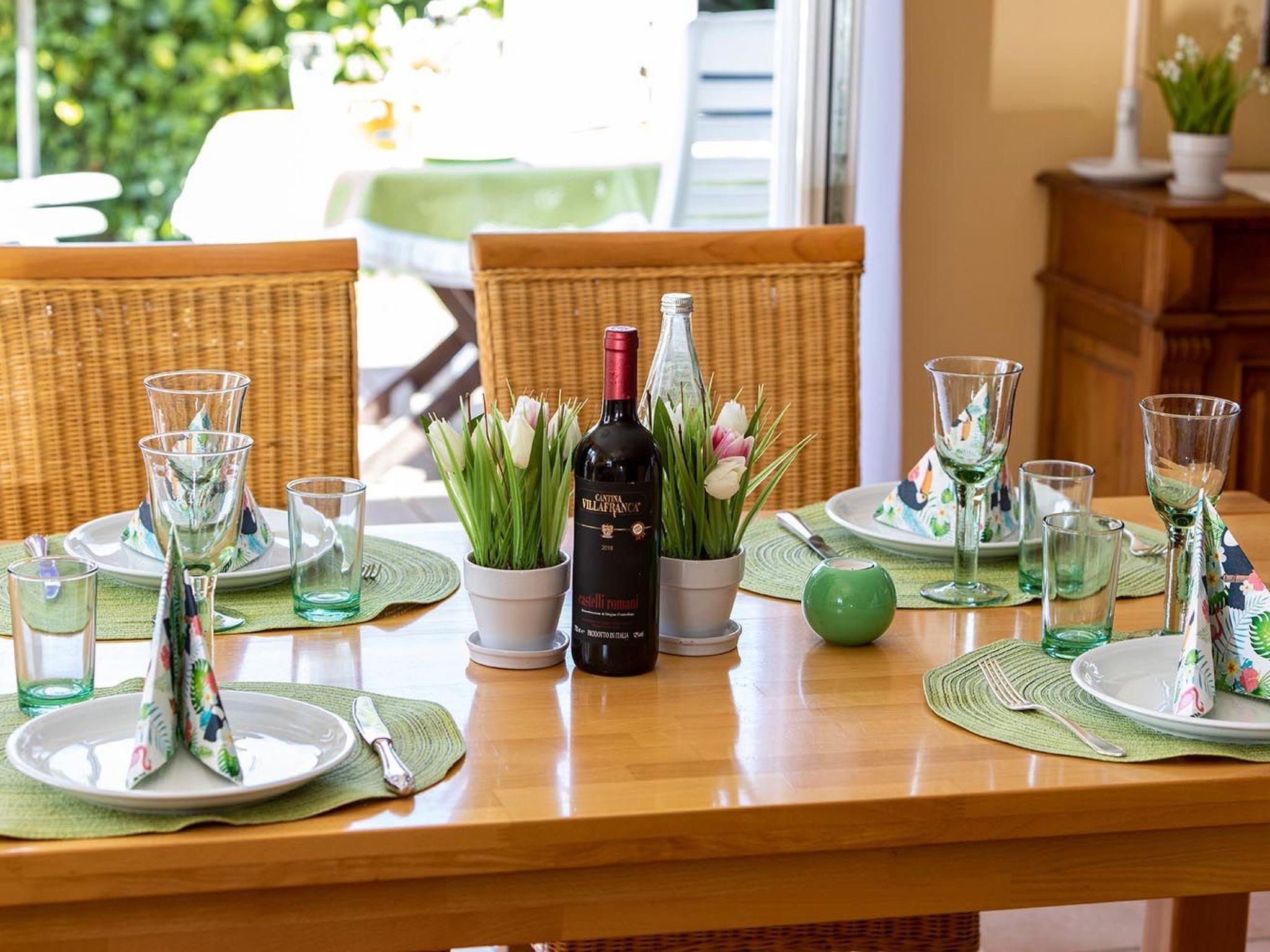 The tastefully decorated and furnished house is in a quiet residential area and has an idyllic garden with a grill area.