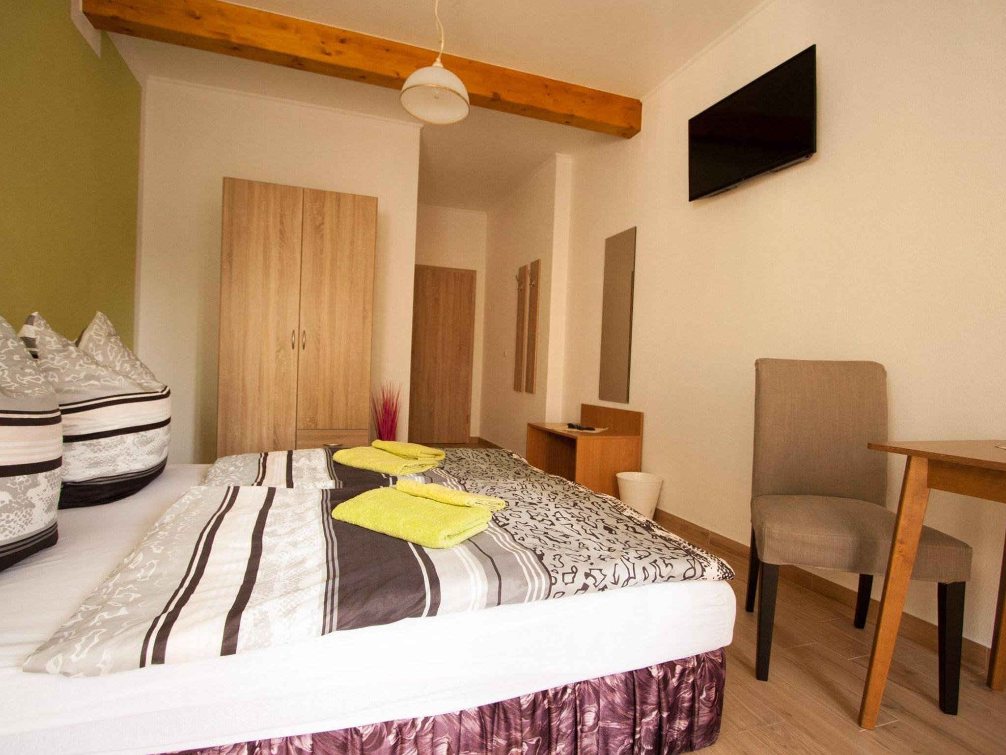 DIE PENSION In unserer neuen, im mediterranen Stil gebauten Pension bieten wir Ihnen 5 moderne und gut ausgestattete Doppelzimmer und eine ebenerdige Ferienwohnung mit allem drum und dran, welche zudem behindertengerecht ausgebaut ist.